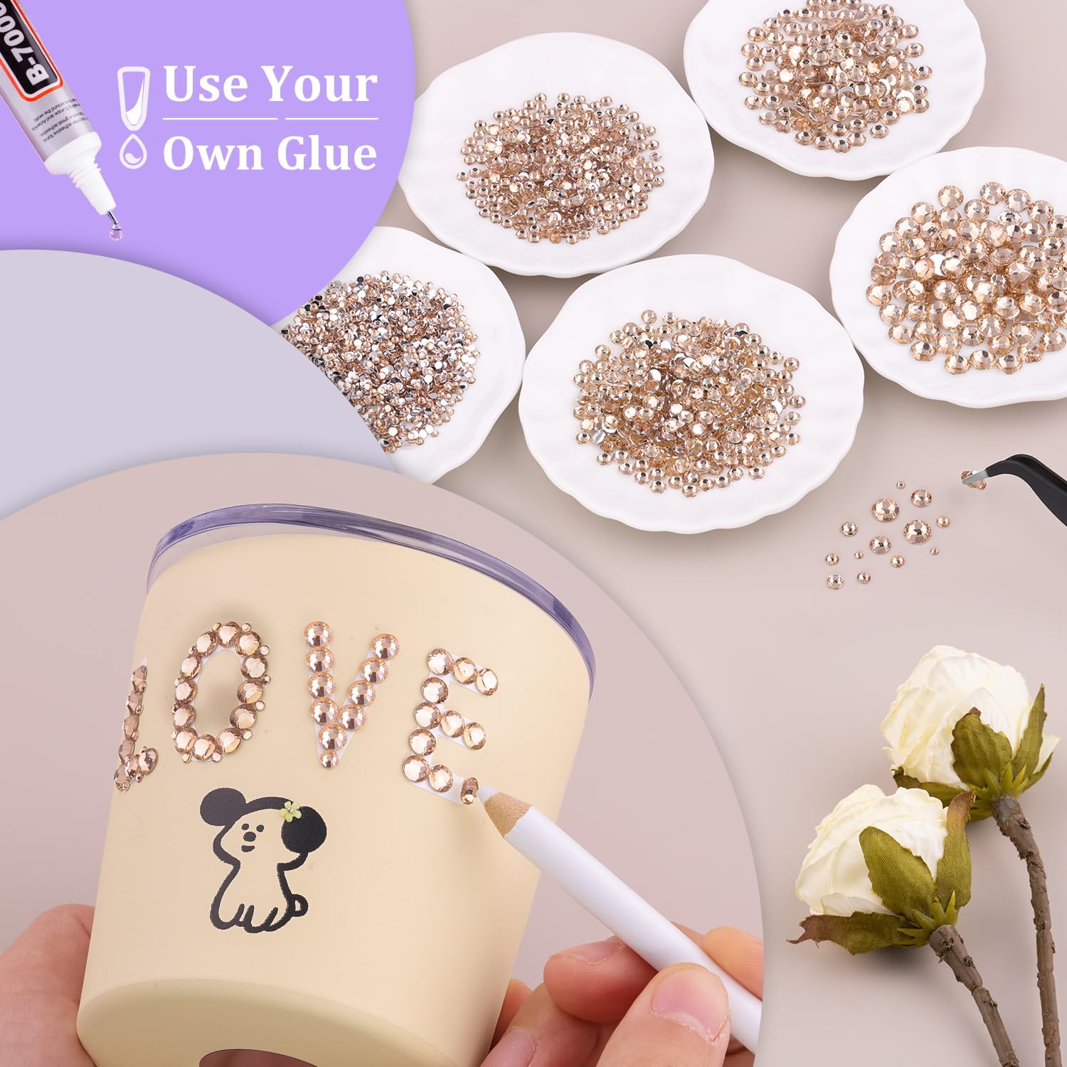 Resin Rhinestones for Crafting, 1 Box Champagne Multi Sizes Flatback Bedazzling Crystals for Crafts Nail Art Deco, Non Hotfix Gems Charms for Tumbler Shoes Clothing Fabric Face Makeup