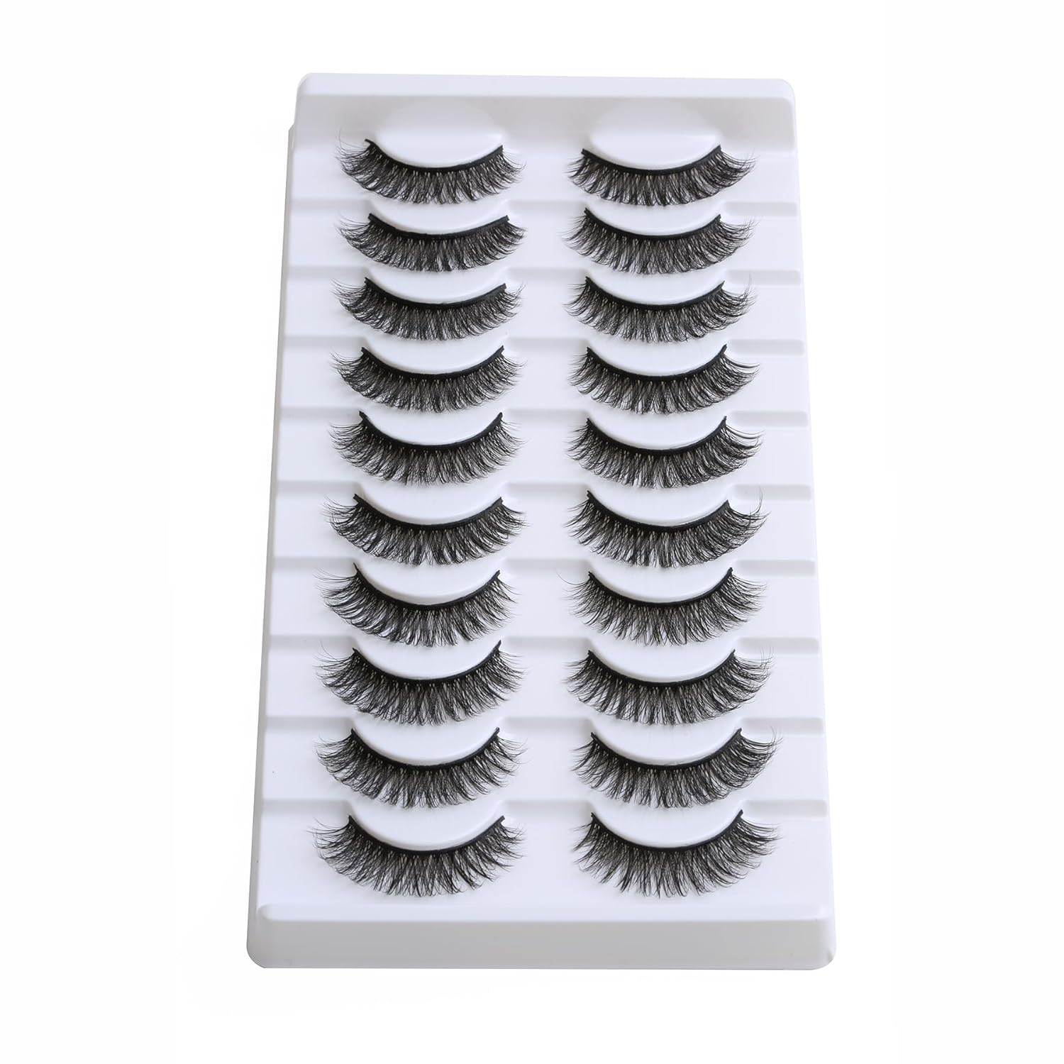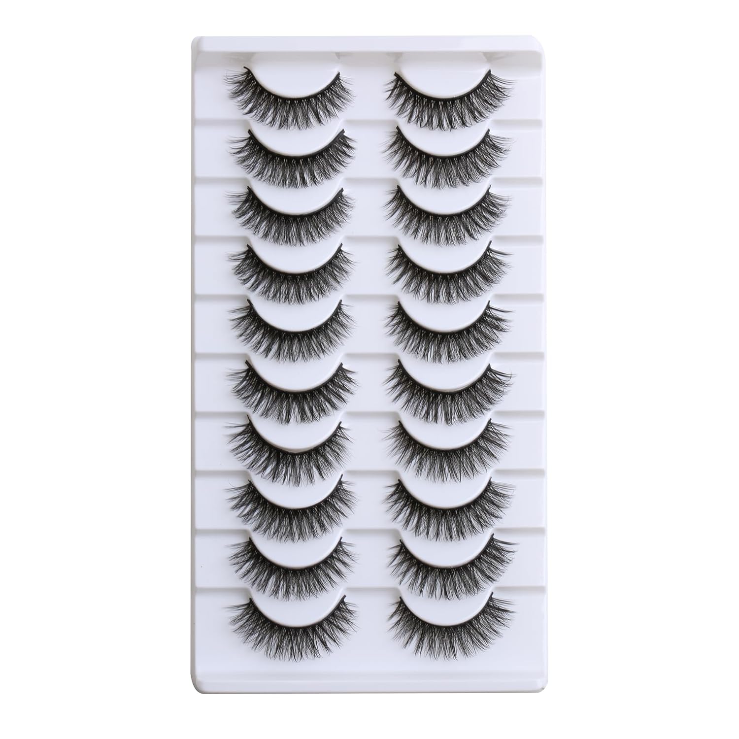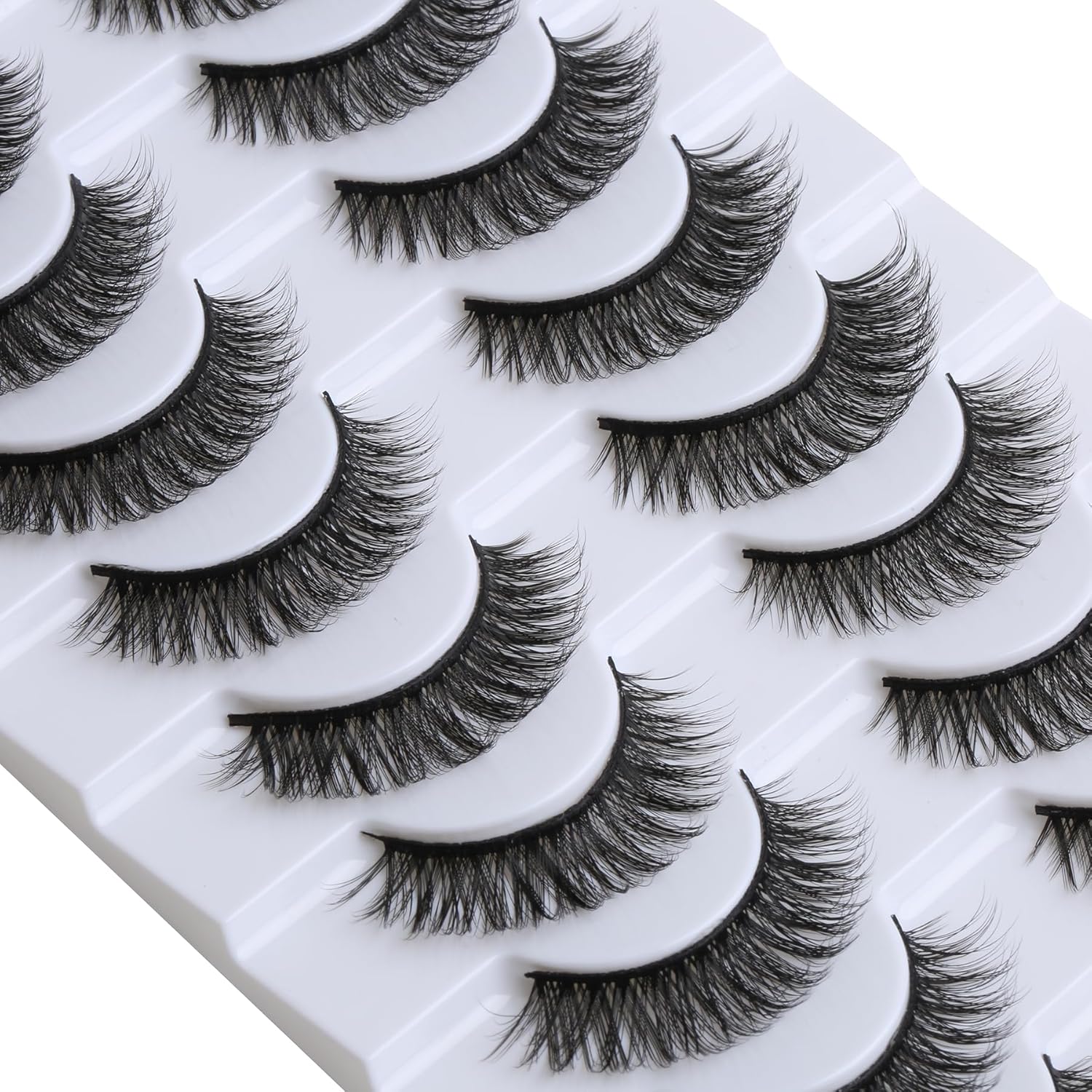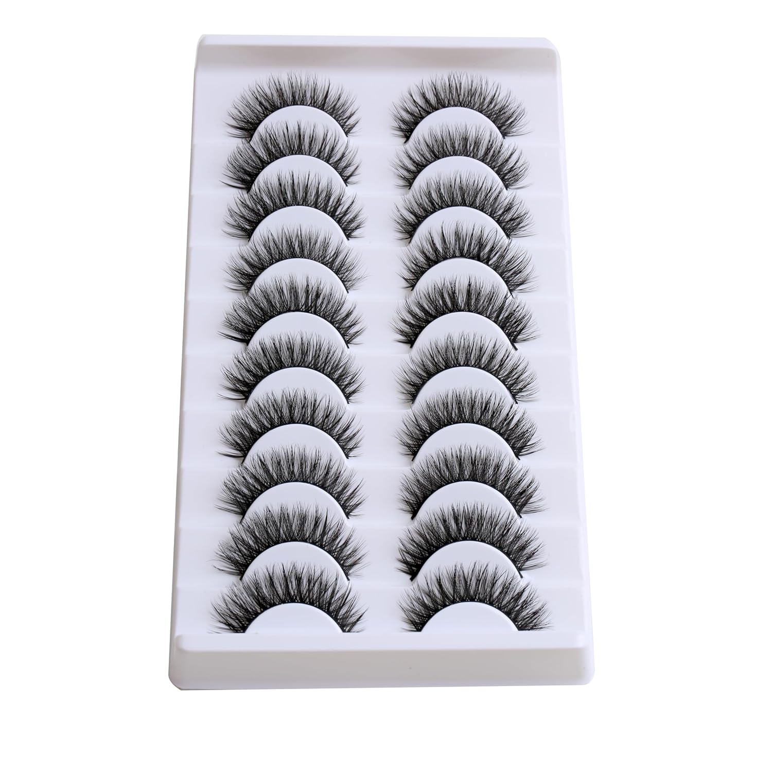SUNWELL False Eyelashes 12mm Mink Lashes Natural Look 3D Faux Mink Eye Lashes Soft Reusable Luxury Volume Fake Eyelashes 10 Pairs Pack