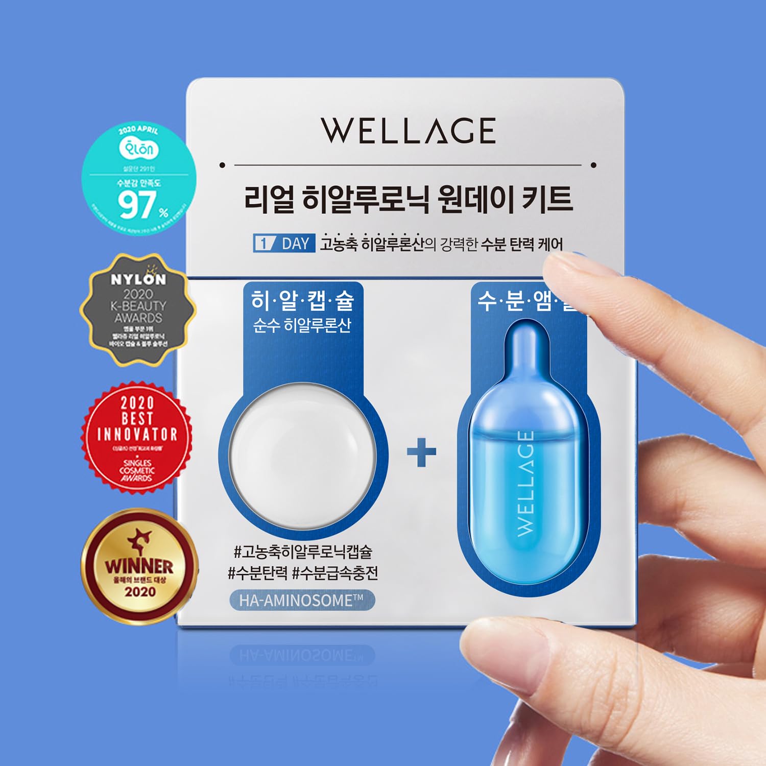 WELLAGE Real Hyaluronic Acid Hydrate One Day Kit Serum 2ea, Korean Beauty Secret Ampoule, High Concentration HA Ceramide 8 Herbal Extracts for Firming and Moisturizing Special Day Care