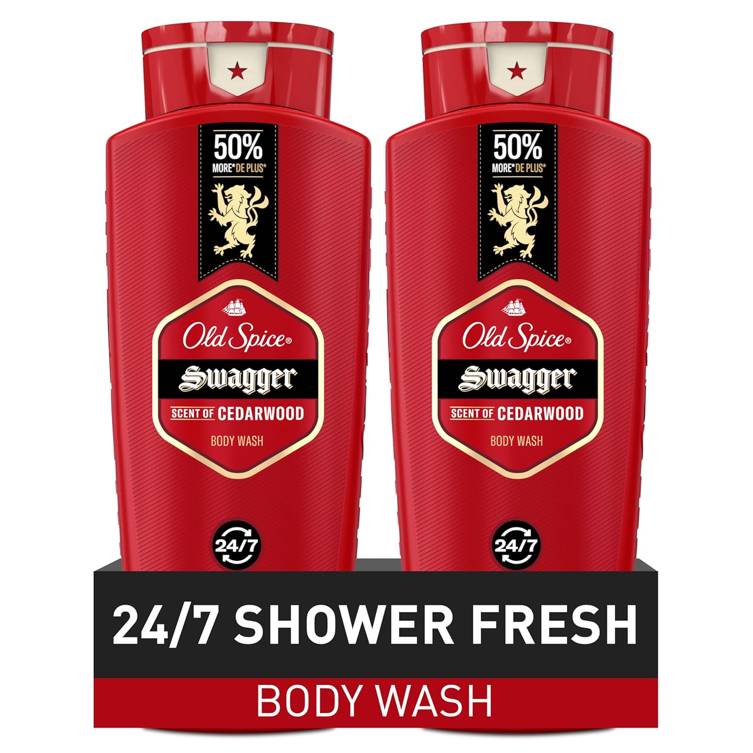 Old Spice Body Wash for Men, 24/7 Shower Fresh with Lasting Scent, Red Collection, Swagger with Cedarwood Scent, 24 fl oz (Pack of 2)