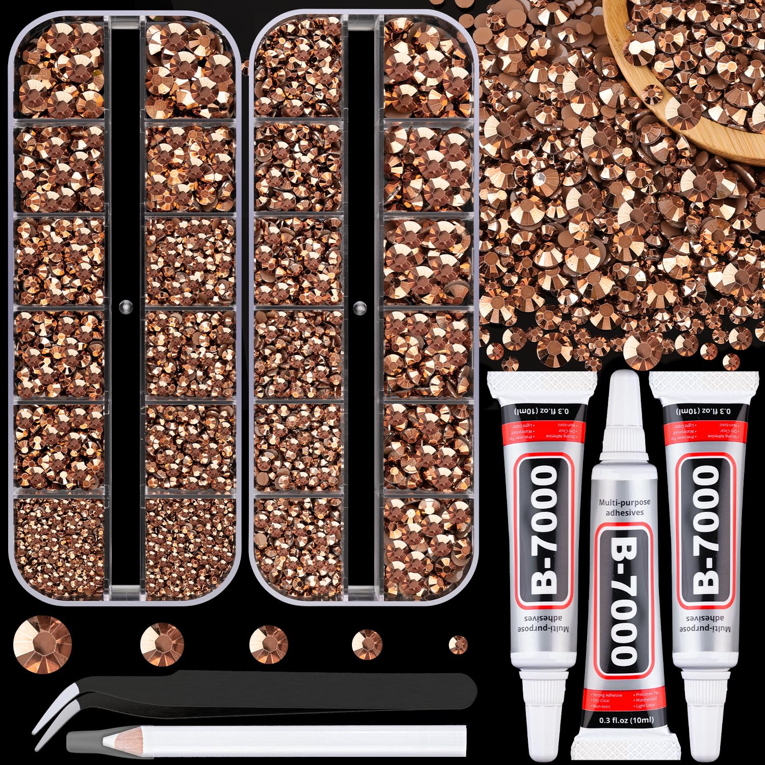 Resin Jelly Rhinestones for Crafting with B7000 Jewelry Glue, 2 Boxes Champagne Flatback Crystals with 3Pcs 10ml Glue, Bedazzling Non Hotfix Gems for DIY Tumblers Clothing Shoes Manicure