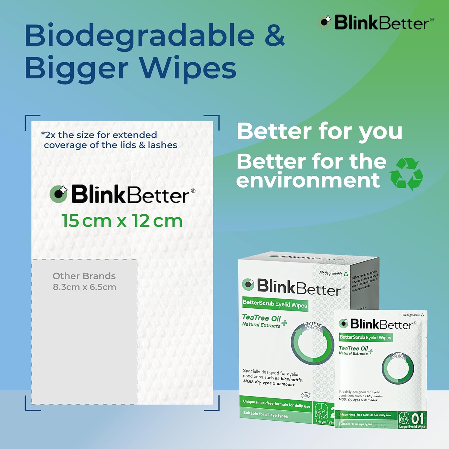 - REFRESHING: Revitalise your eyes with BlinkBetter's "3x moisture" technology, and feel instantly refreshed. These wipes, maintaining extra moisture, offer a refreshing experience with every use. Enjoy long-lasting comfort and a revitalising sensation.
