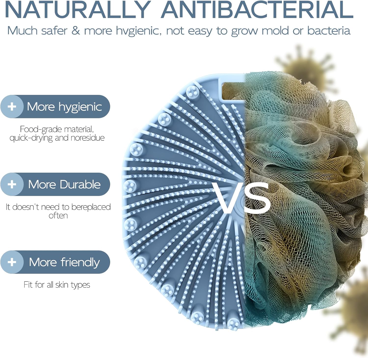 - ECO-FRIENDLY SILICONE: Crafted from safe and durable food-grade silicone, our body bath scrubber is gentle on your skin while still offering effective exfoliation and cleansing.