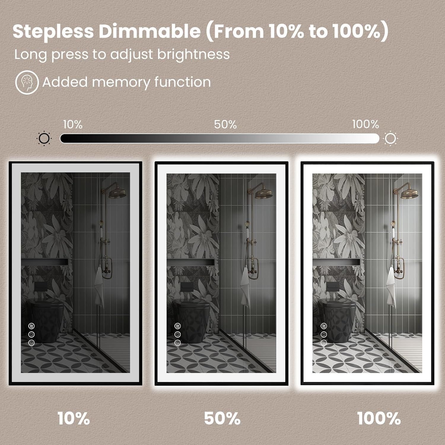 Amorho 40"x 30" LED Bathroom Mirror with Black Frame, Front Light and Backlit(Controlled Separately), Stepless Dimmable, Anti-Fog, Shatter-Proof, 3 Colors, Memory