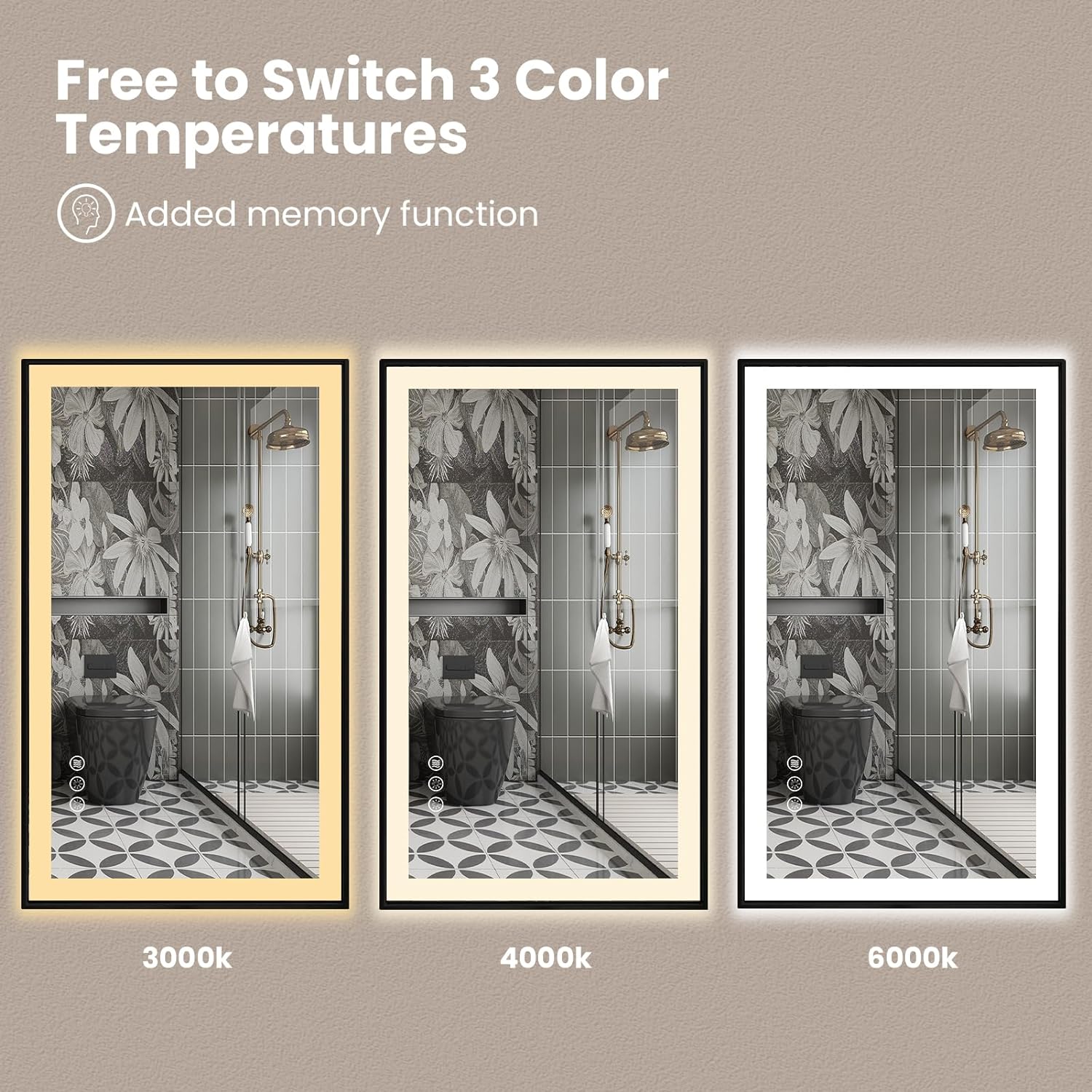 Amorho 55" X36" LED Bathroom Mirror with Black Frame, Front Light and Backlit(Controlled Separately), Stepless Dimmable, Anti-Fog, Shatter-Proof, 3 Colors, Memory