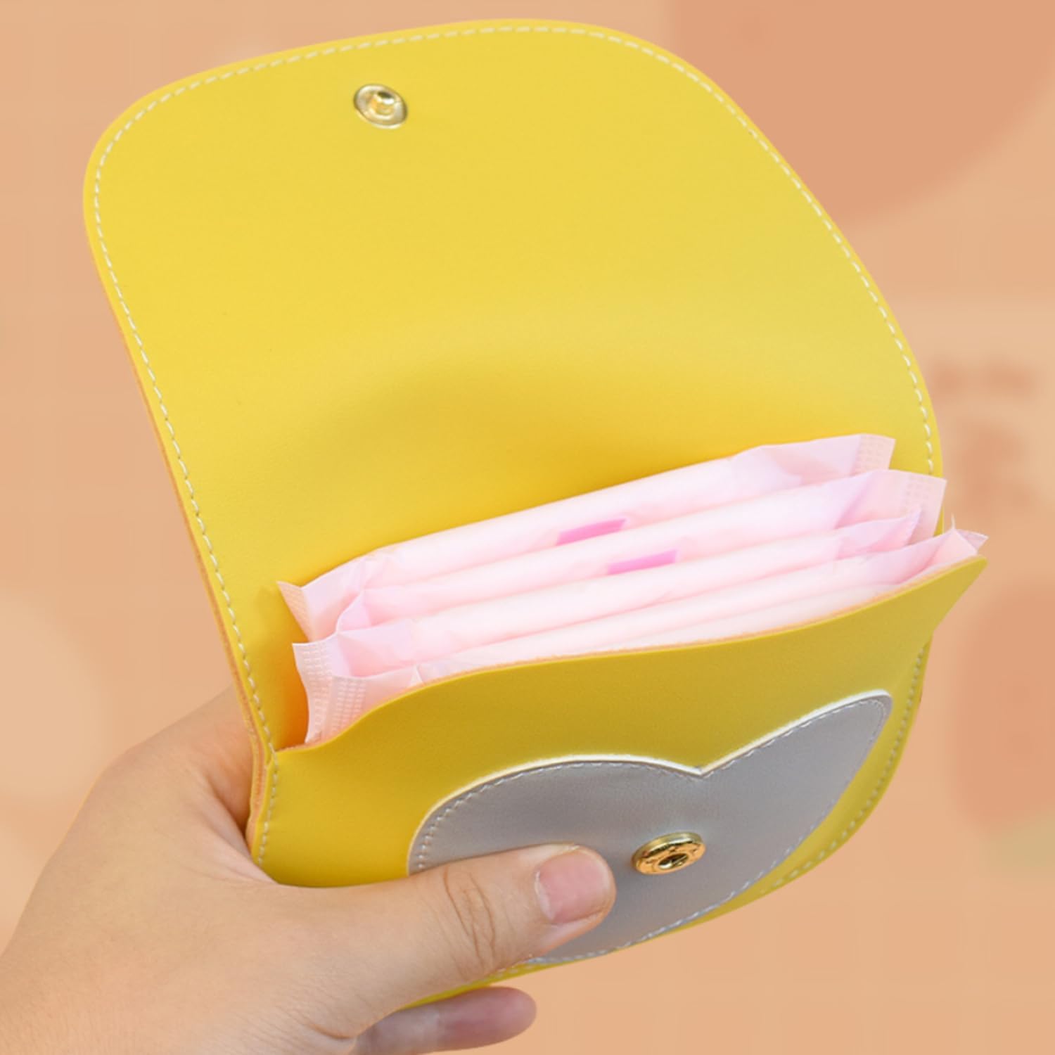 1Pcs Leather Sanitary Napkin Storage Bag, Portable Period Kit Bag, Pad Pouch Tampon Sanitary Napkin Receptacle (Yellow)