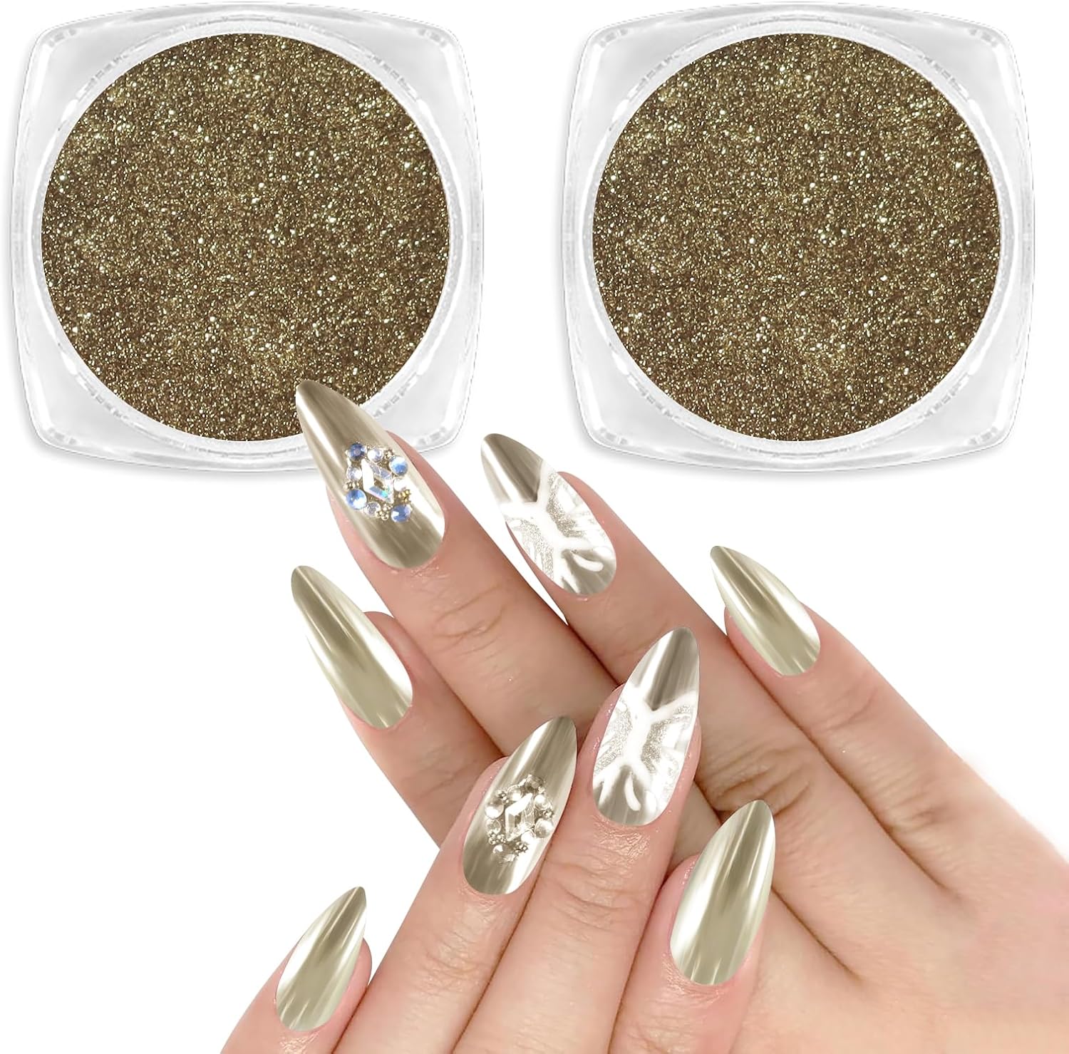 Allstarry Chrome Nail Powder 2pcs Metallic Mirror Effect Dust Glitter Glazed Manicure Decoration Reflective Pigment for Gel Polish Nail Art Decoration Resin Craft, Festivals - Champagne Gold