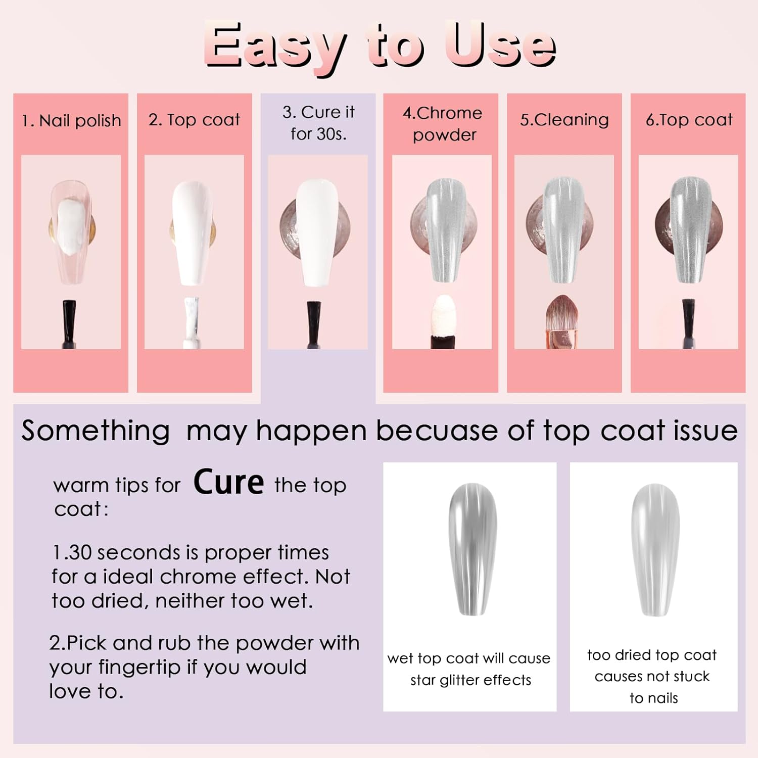 - Wide Usage: Allstarry metallic chrome nail powder set can perfectly match with fall glitter, chameleon flakes, nail charms, french manicure, 3D shell nails and etc, meeting your needs for different works. Whatâs more, the chrome powder for nails can also be applied on UV gel nails, acrylic nails, natural nails, and it can be mixed into nail gel polish or chrome nail polish for its solvent resistance