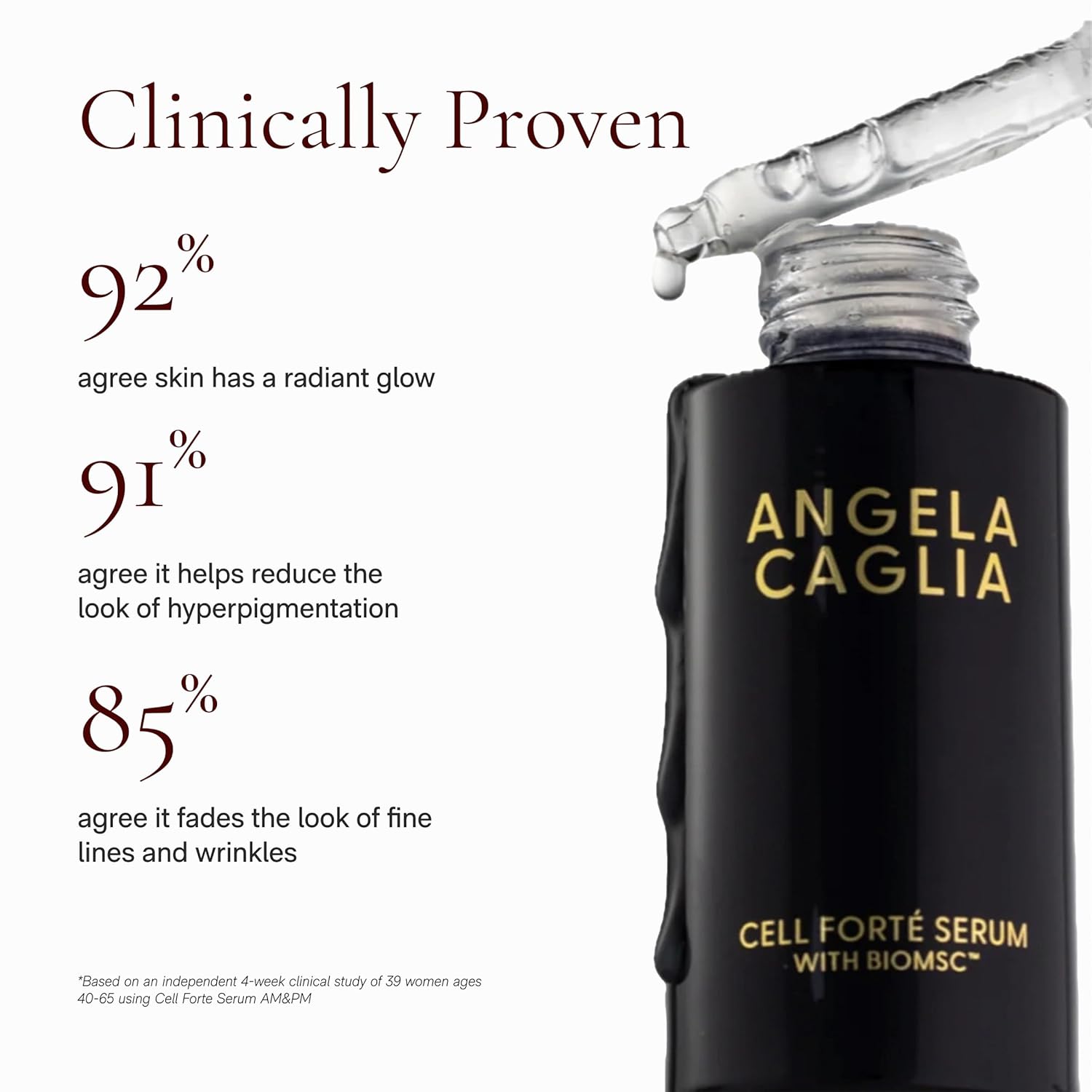 - NEXT GENERATION SKIN REVITALIZING SOLUTION: Angela Caglia’s stem cell conditioned media reduces fine lines and wrinkles while boosting elasticity. This anti aging face serum is designed to work intuitively with your skin’s natural processes by optimizing your skin’s biological aging at the cellular level. Powered by Lipid-Lock Technology, the Cell Forté Serum strengthens the skin barrier and locks in hydration.