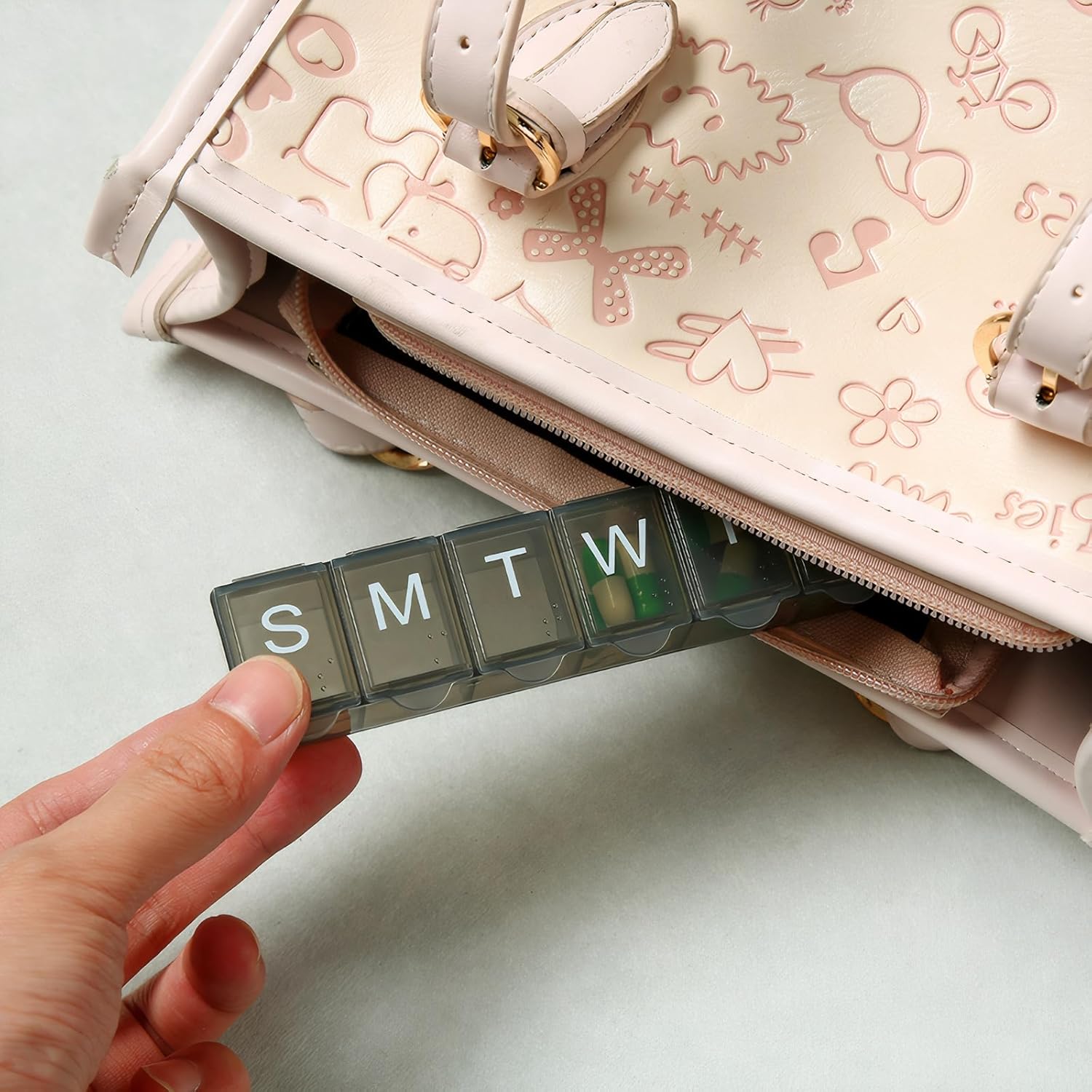 4 Pack Weekly (7-Day) Pill Organizer, 7 Days Pill Case Travel Daily Pill Box Portable Medicine Organizer and Planner with Compartment for Vitamins, Fish Oil, Supplements and Medication (4 Colors)