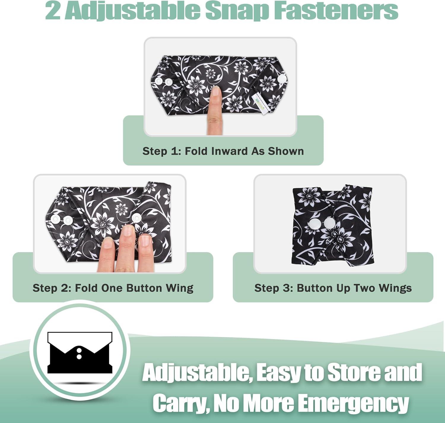 - LOVELY PRINT leak-free outer of Cloth Sanitary Napkin and comfort of the softer, charcoal layer against you. Great as period panties too.Fold over and snap into place.Never feel embarrassing