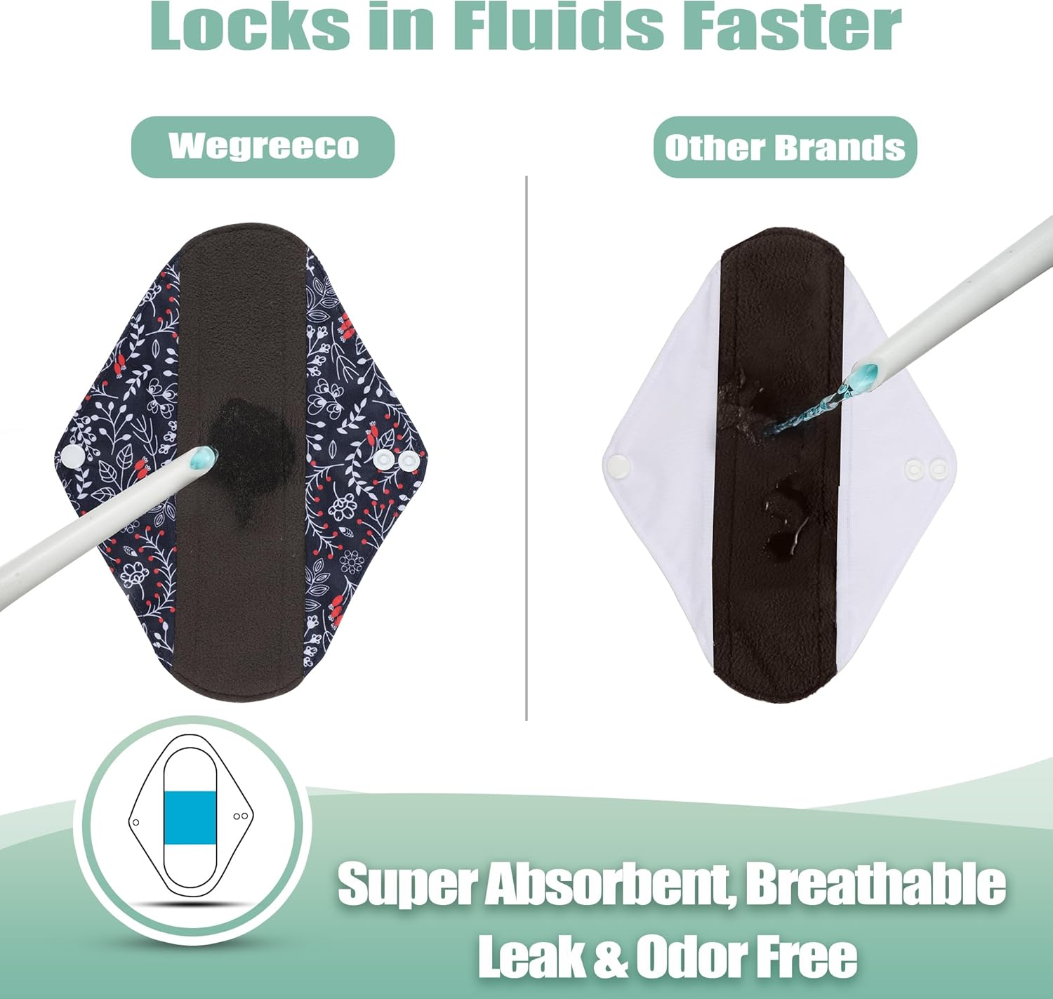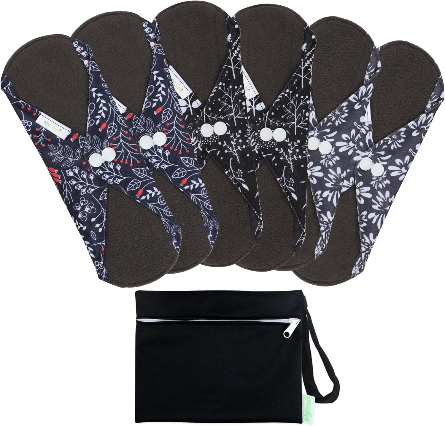 - CHARCOAL INNER LAYERS of these cloth menstrual pads is soft with maximum and have a stay dry surface.The dark color is forgiving of stains and Not only great at soaking up liquid, smells are neutralized. Middle layers microfiber make this reusable sanitary napkin super absorbent