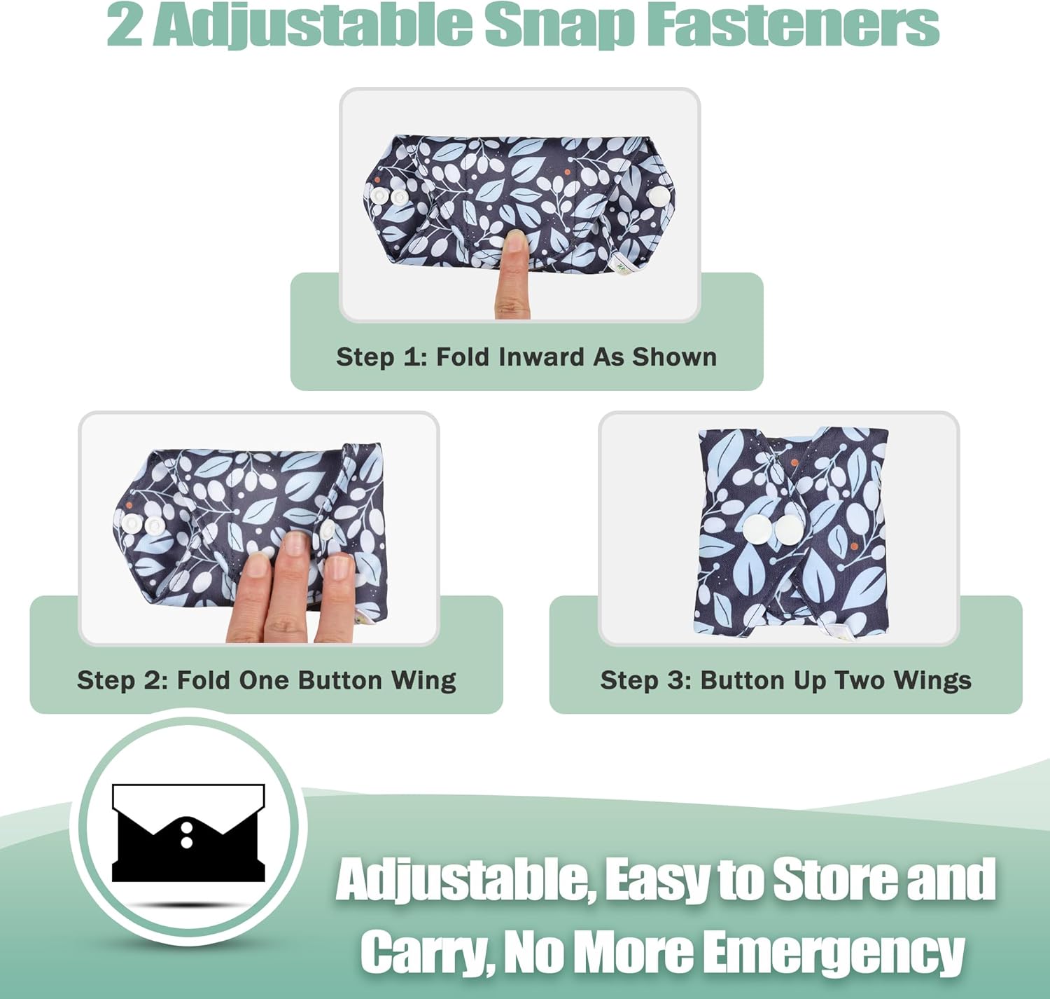 - LOVELY PRINT leak-free outer of Cloth Sanitary Napkin and comfort of the softer, charcoal layer against you. Great as period panties too.Fold over and snap into place.Never feel embarrassing