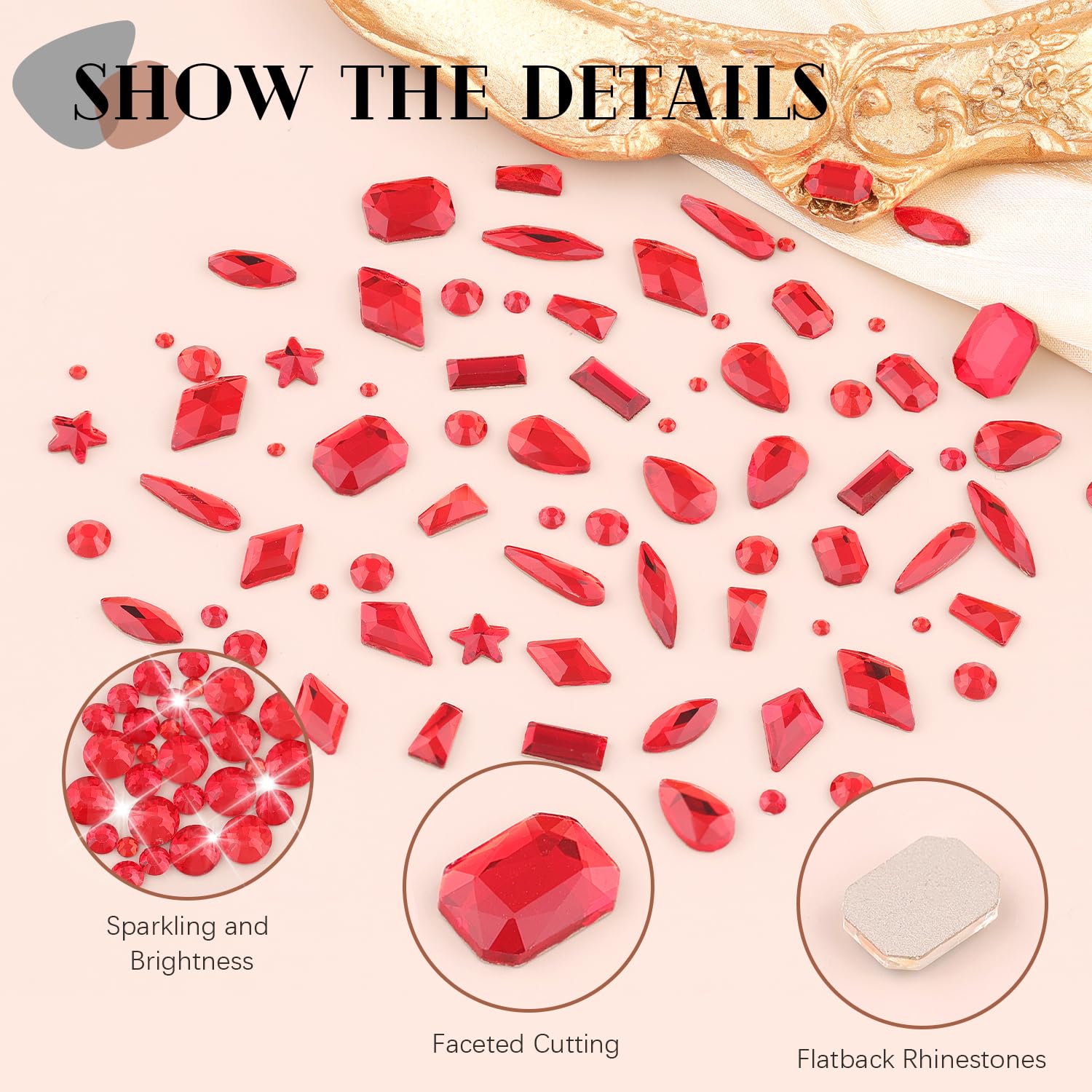 - đPACKAGE CONTENT -- The package contains 120Pcs multi shapes flatback gems crystal and 3100Pcs 1.5-4mm round beads, totally 3220Pcs Red rhinestones. Additionally, 1 tweezers for large size gems and 1 pickup pen for small size gems. 1 15ml rhinestones glue gel for nail design. This rhinestones kit makes it easy for you to make any nail art you like, and will bedazzle your acrylic nails!