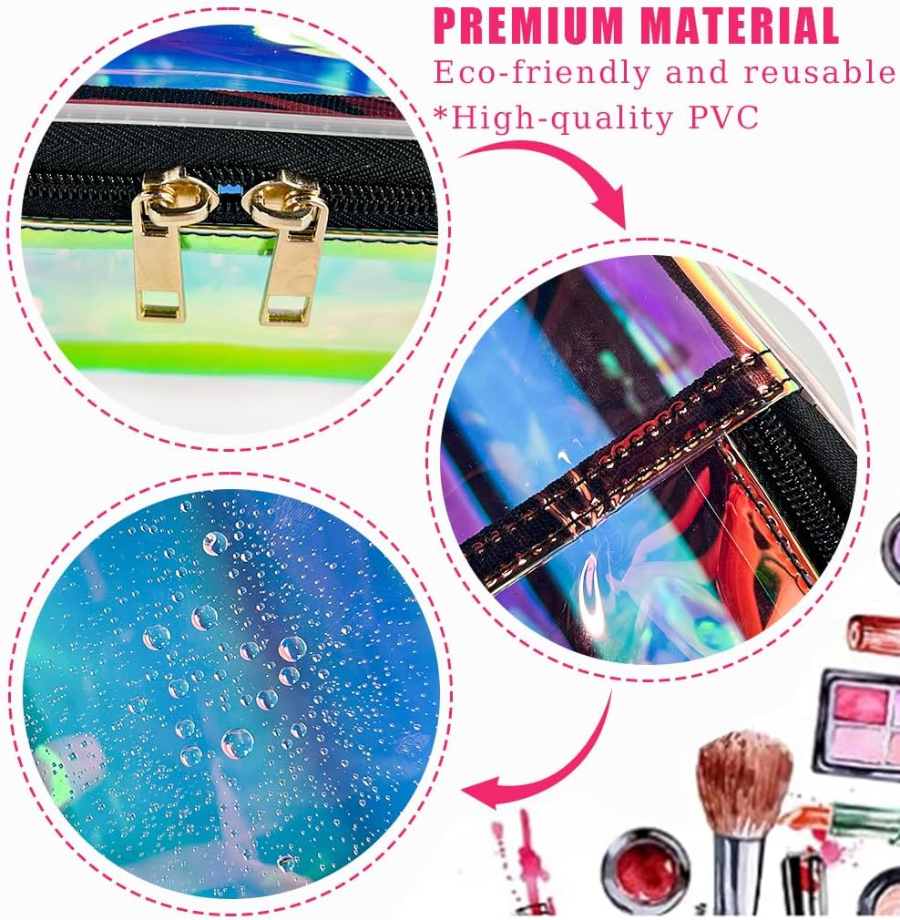 - đˇăPortable and StylishăOur portable holographic makeup bag is 20x14x8cm/7.87x5.51x3.15inches,lightweight and durable.Transparent material allows for easy visibility of internal items.Convenient for you to quickly find and retrieve items,bringing you more convenience