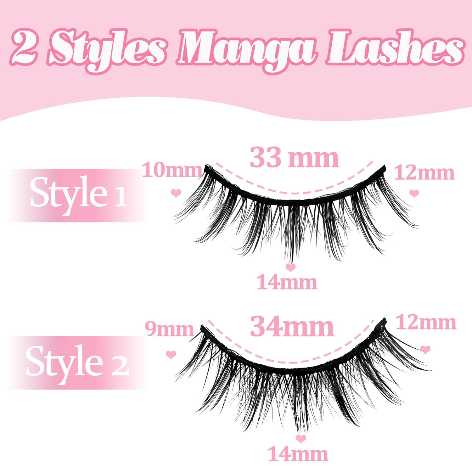 - Get 2 Styles Anime False Lashes At Once: Now, you can get 2 different styles manga lashes within this pack. 20 pairs asian false eyelashes will give you more choices and save your much money. If you would like natural daily or gorgeous makeup, this one is worth getting!