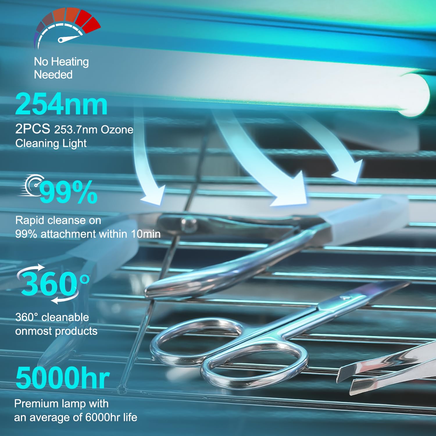- ✅ MULTI-PURPOSE – A wide range of commercial and domestic products can be cleaned with the tool cabinet. This is an ideal tool for a nail salon, spa, beauty parlor, barbershop, tattoo parlor, clinics or even at home. Additionally, it's a fantastic tool to use on your personal items, like your own manicure and pedicure set, metal kitchen utensils, smartphones, nail tweezers, eyebrow scissors, towels, tableware, glasses, keys, pacifiers, toothbrushes and more,designed for all kinds of items. kids toys and other plastic goods and more.