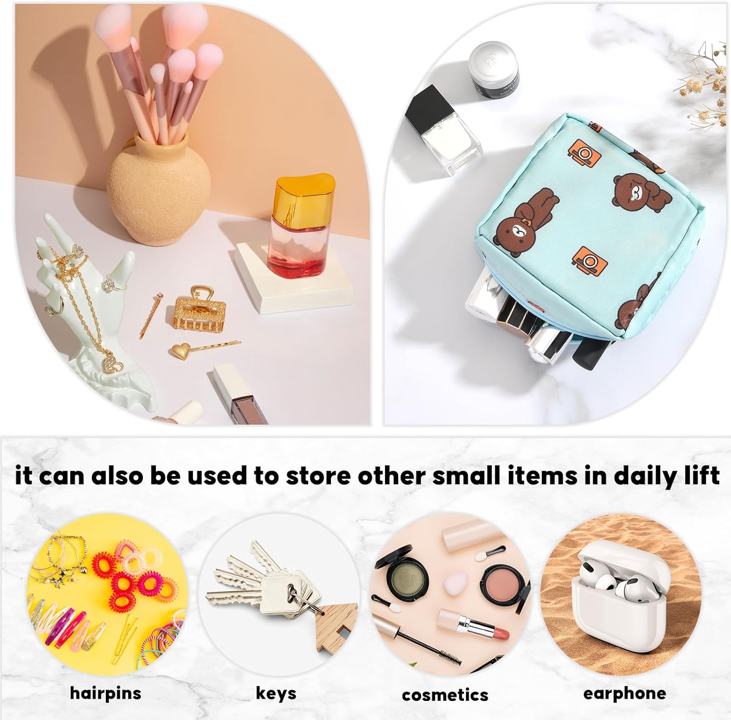 - Thoughtful Design: The period pad bag is 5.1 x 5.1 x 1.8 inches in size, which can hold 8-10 sanitary napkins. The compartmentalized interior is easy to store and keeps items organized.