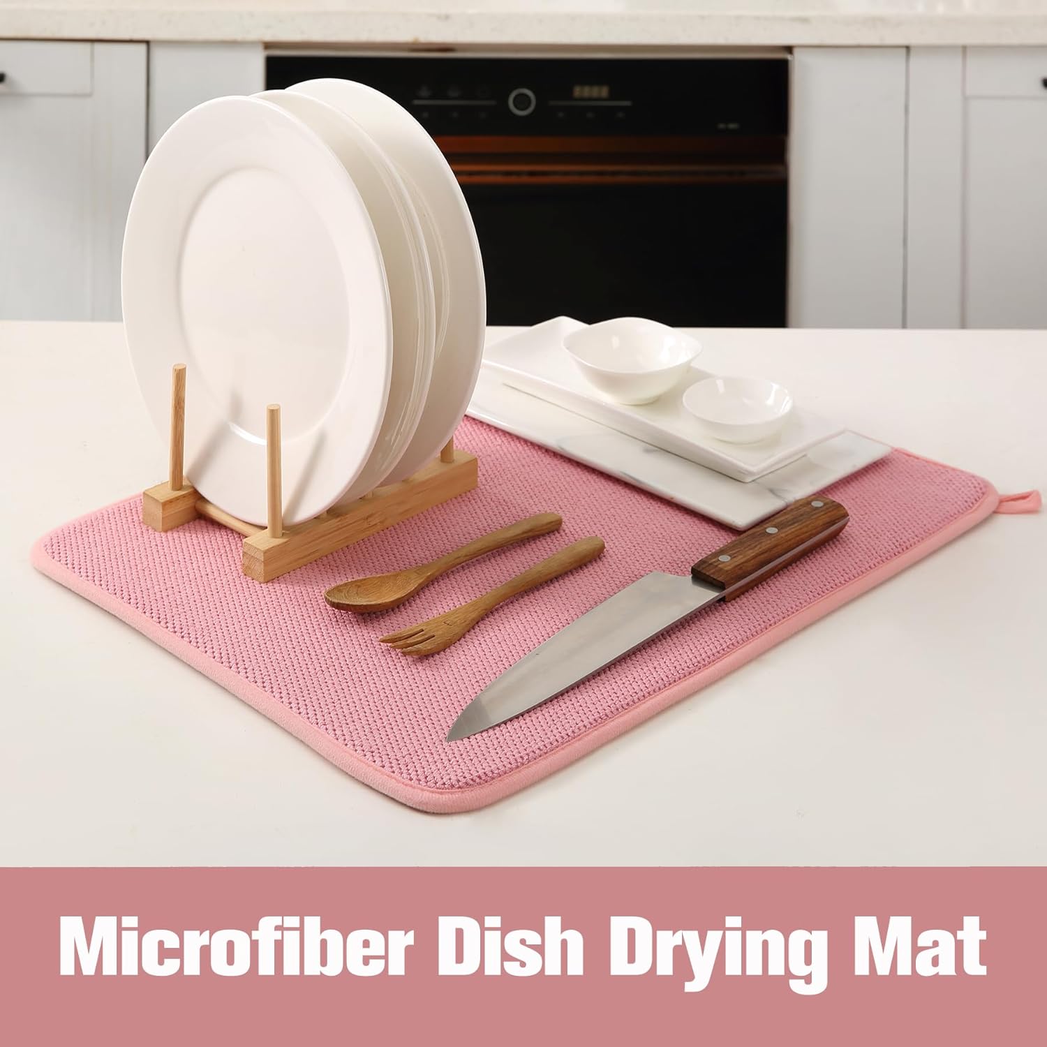 2 Pack Microfiber Dish Drying Mat for Kitchen Counter,Ultra Absorbent Dish Drainer Mat ,Dish Drying Pad , Dish Rack Mat 20×15 Inch (Pink)