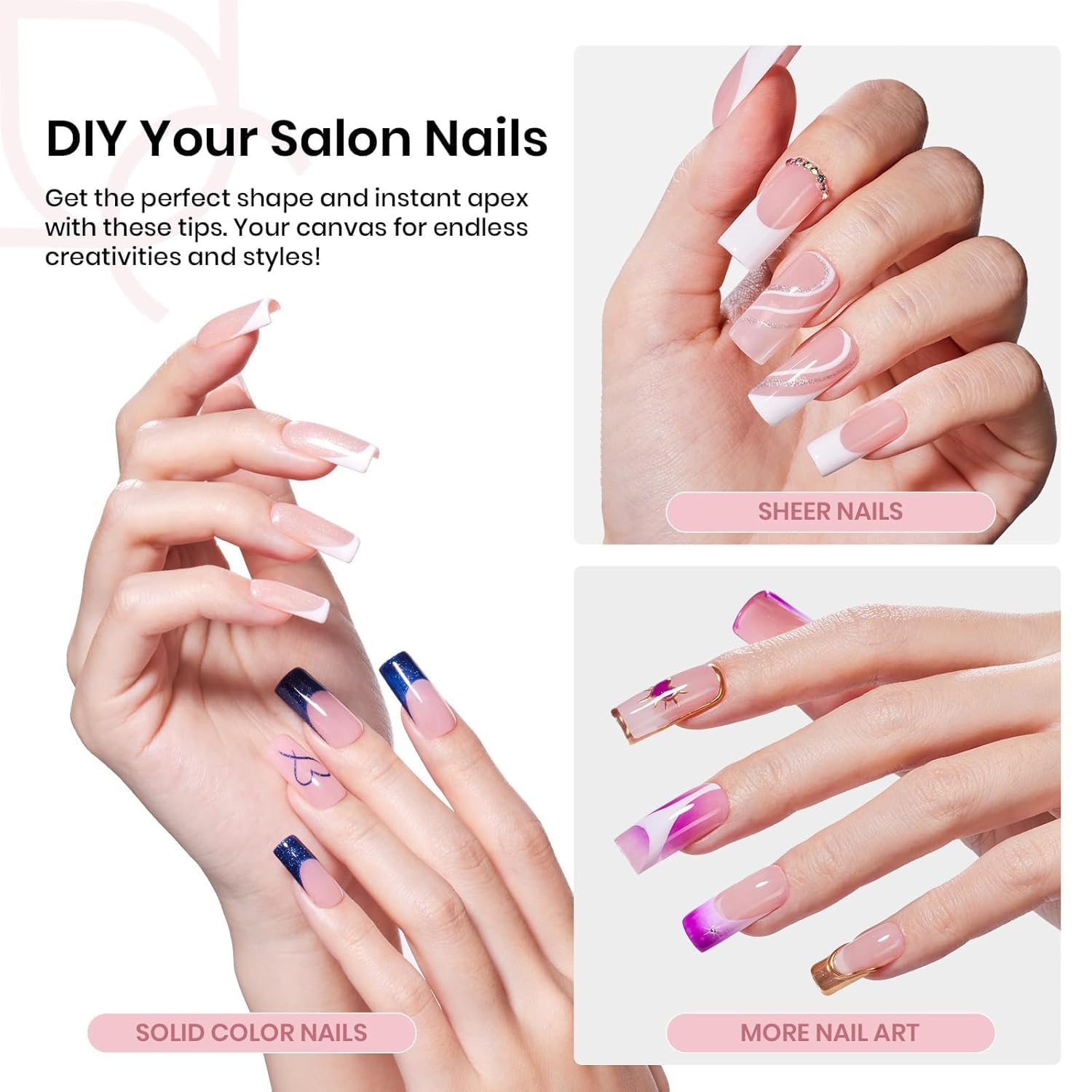 Beetles Tipex Nail Kit, Square Medium Nail Tips 224 Pcs 16 Sizes Pre-Etched Fake Nails with Tipex Nail Glue Mini Nail Lamp - Thick Acrylic Nail Set Pre-Builder Gel Press-on Nails