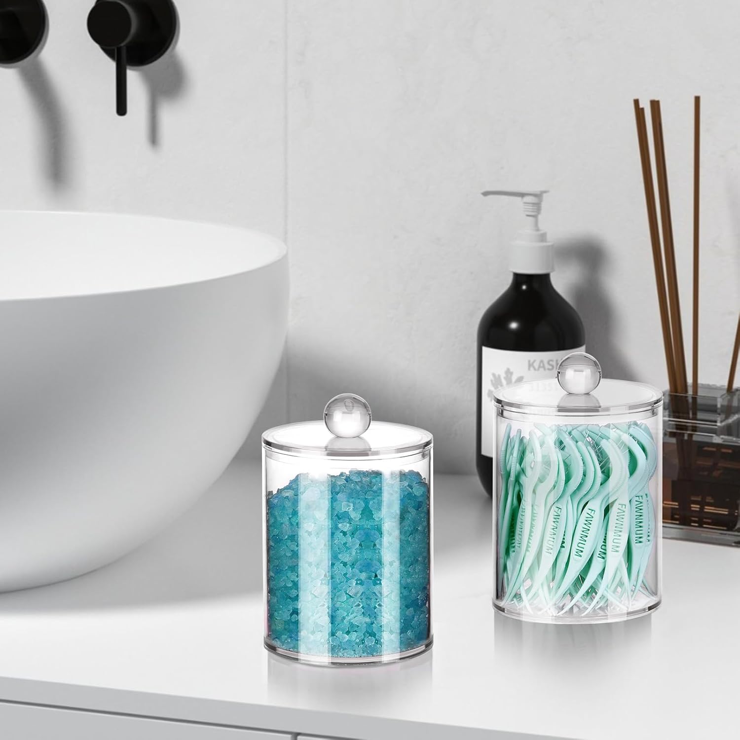 - PRODUCT INCLUDES:Product includes 2 x 10 oz,2 x 12 oz cotton swab jars with lids, smooth edges, safe and unbreakable