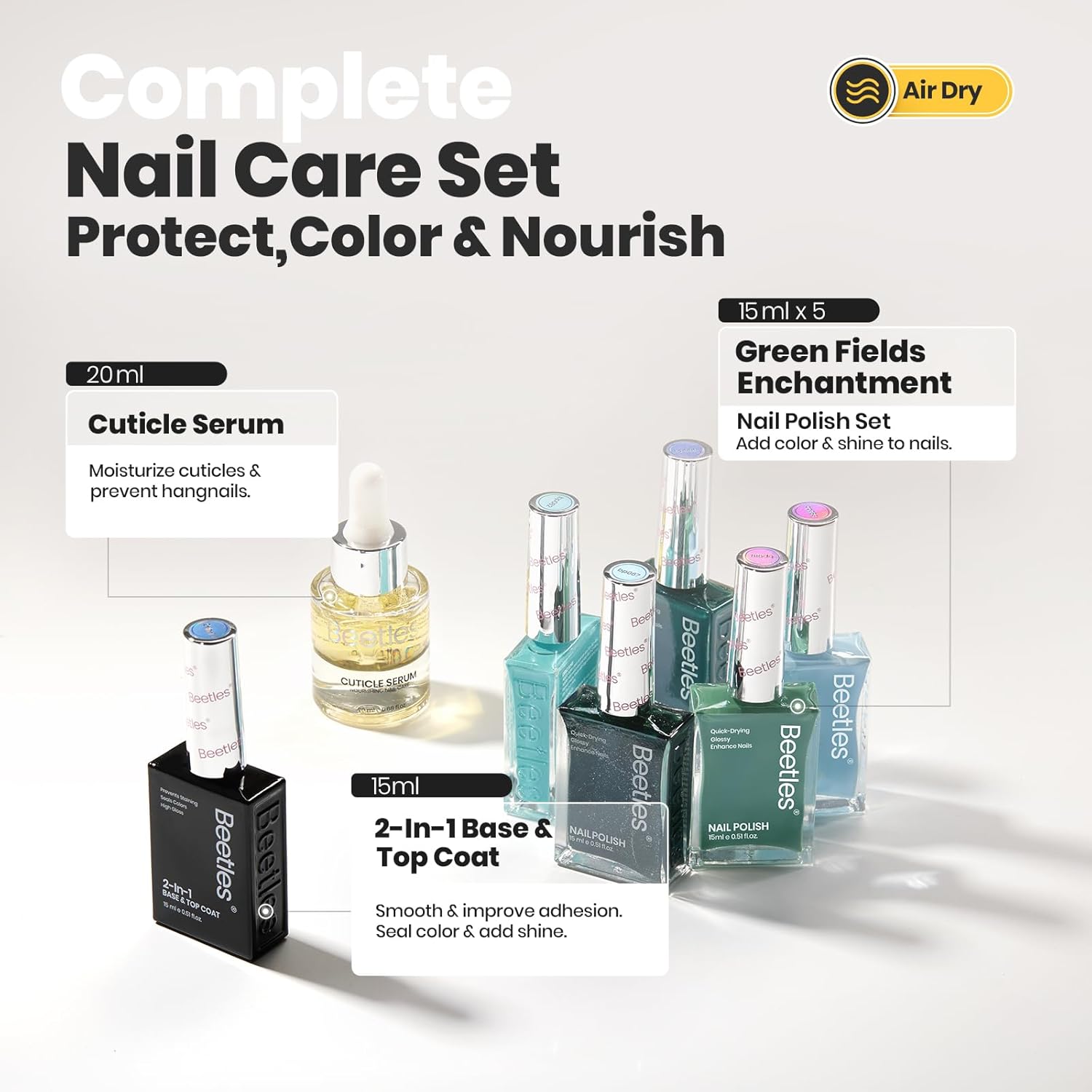- Included Components : cuticle oil, 2-in-1 base&top coat