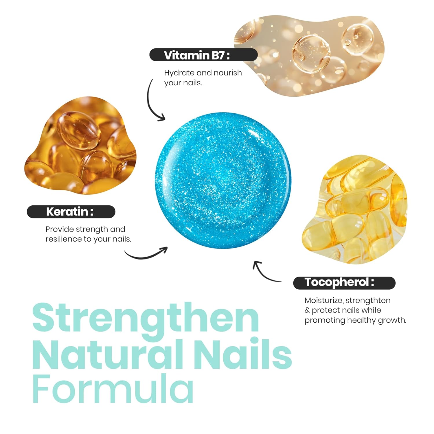 - High-Gloss finish: Indulge in the rich and vivid hues of our blue glitter nail polish. The exquisite formula provides a long-lasting, high-gloss finish that elevates your nails and is easy to remove.