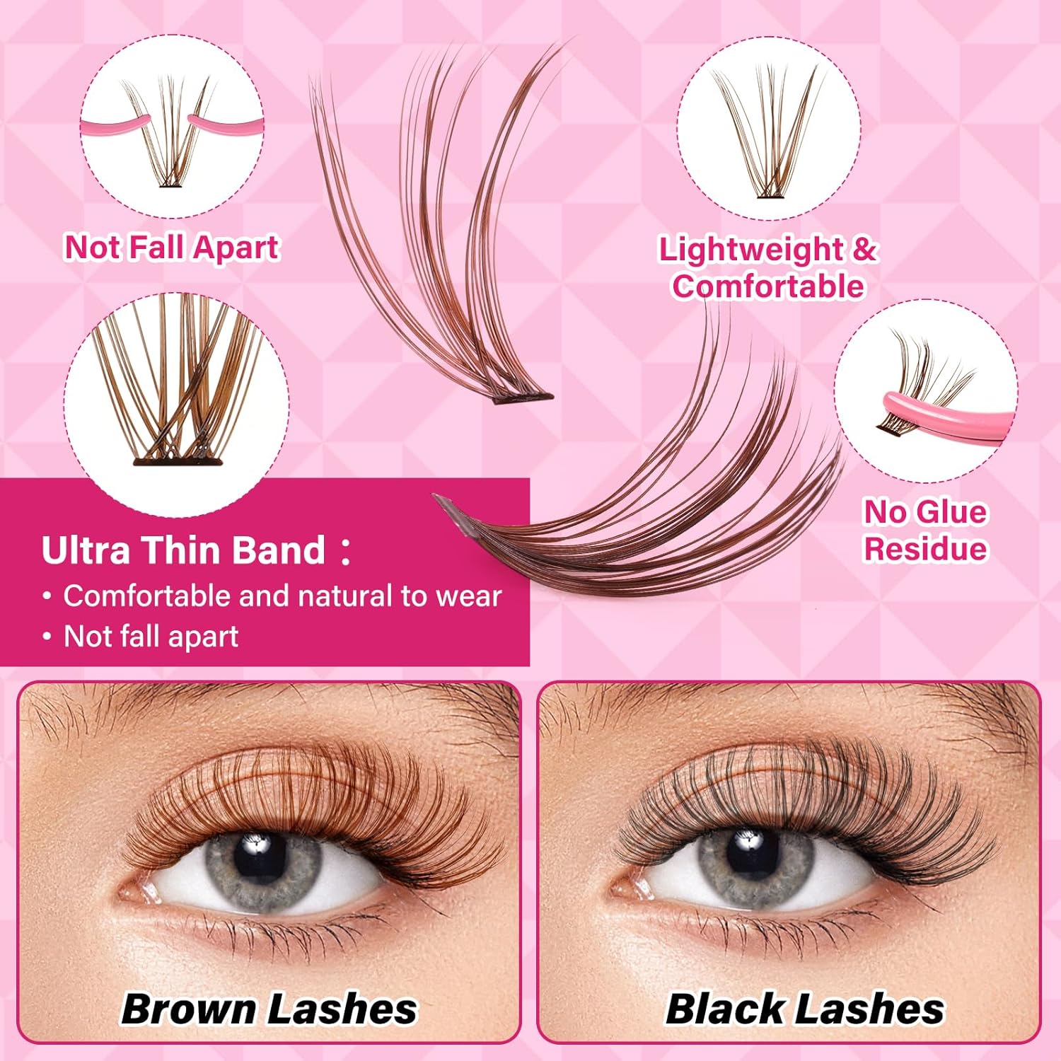 - 280 Brown Lash Clusters: You can provide 280 lashes in one tray! The blended lengths range from 9mm to 16mm,D curl , and there are also have 30D+40Dďź60D+80D With a variety of styles for you to choose from.