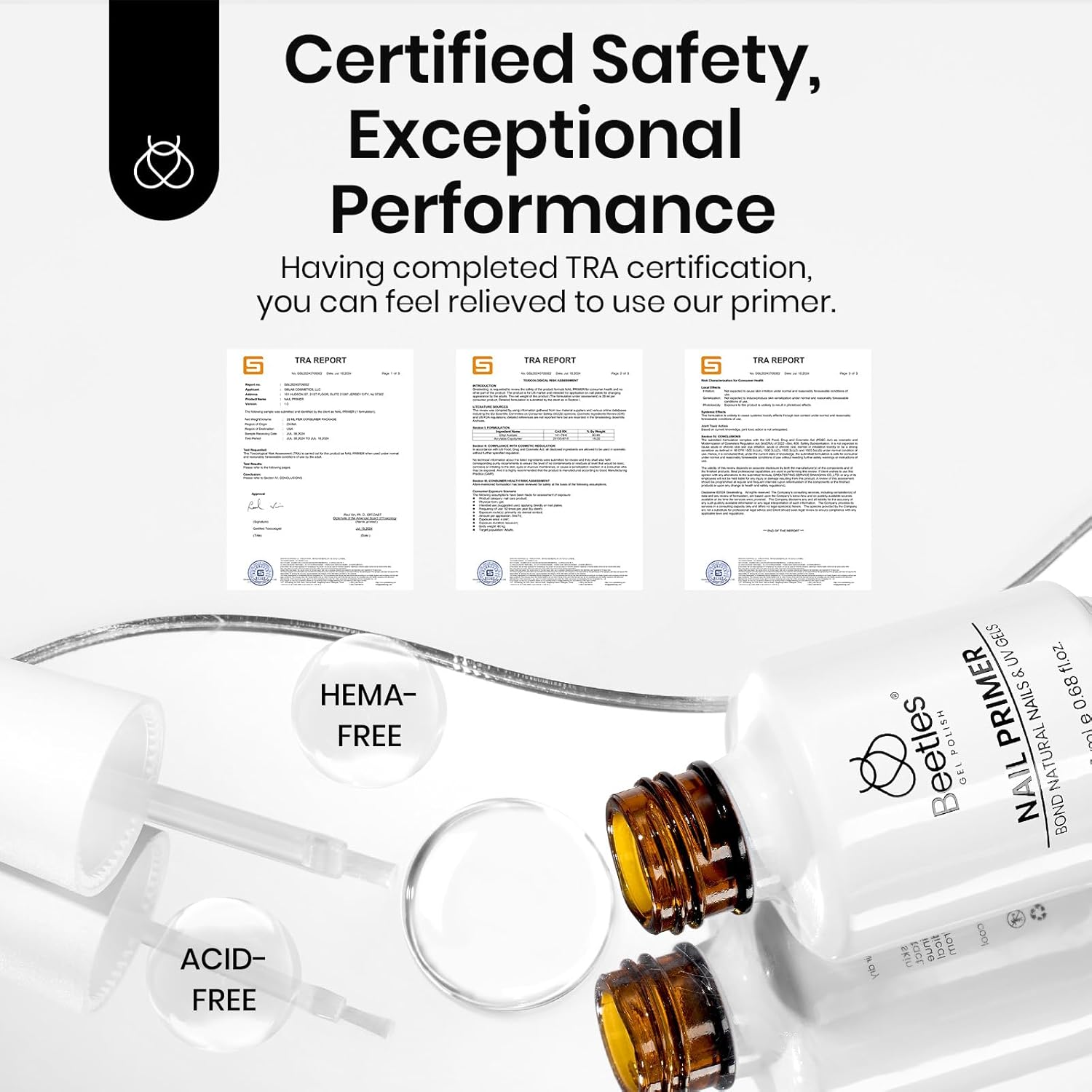 Beetles 20ml Nail Primer for Gel Nail Polish, Hema Free Dehydrator and Primer Bond Acid-Free Fast for Acrylic & UV Gel Gift for Women