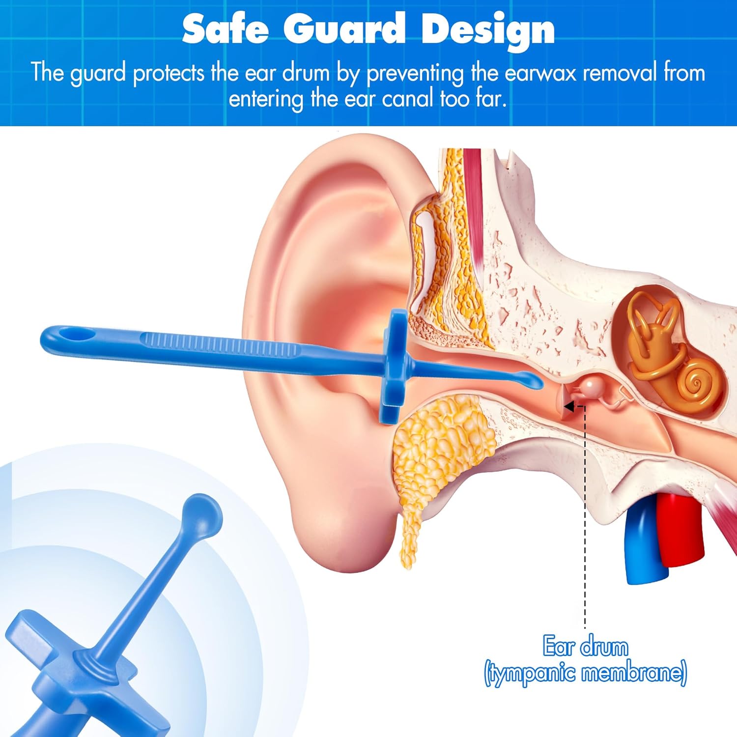 - 【Safe Ear Wax Removal Tool】The guard protects the ear drum by preventing the ear wax removal tool from getting in too much; Plastic ear wax removal has rounded edges and smooth surfaces to minimize the risk of accidental injury while cleaning ears