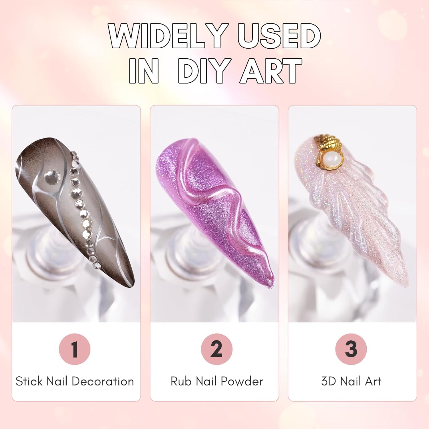 - Versatile Nail Art Gel - The nail charm glue are super sticky, excellent in securing gems jewels beads nail rhinestones on your nails. Makartt 3D Silver Metal Painting gel is perfect for DIY nail art. It offers long-lasting, low odor, and easy application. With proper handling, it will bring beautiful results for at least three weeks (LED required)