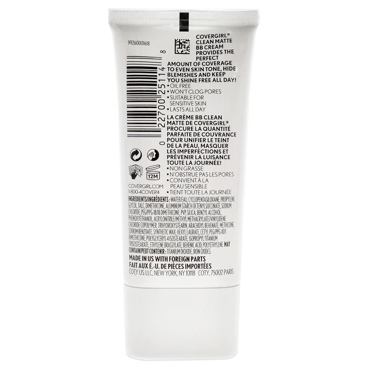 - Oil free matte formula won't clog pores and keeps skin shine free all day.