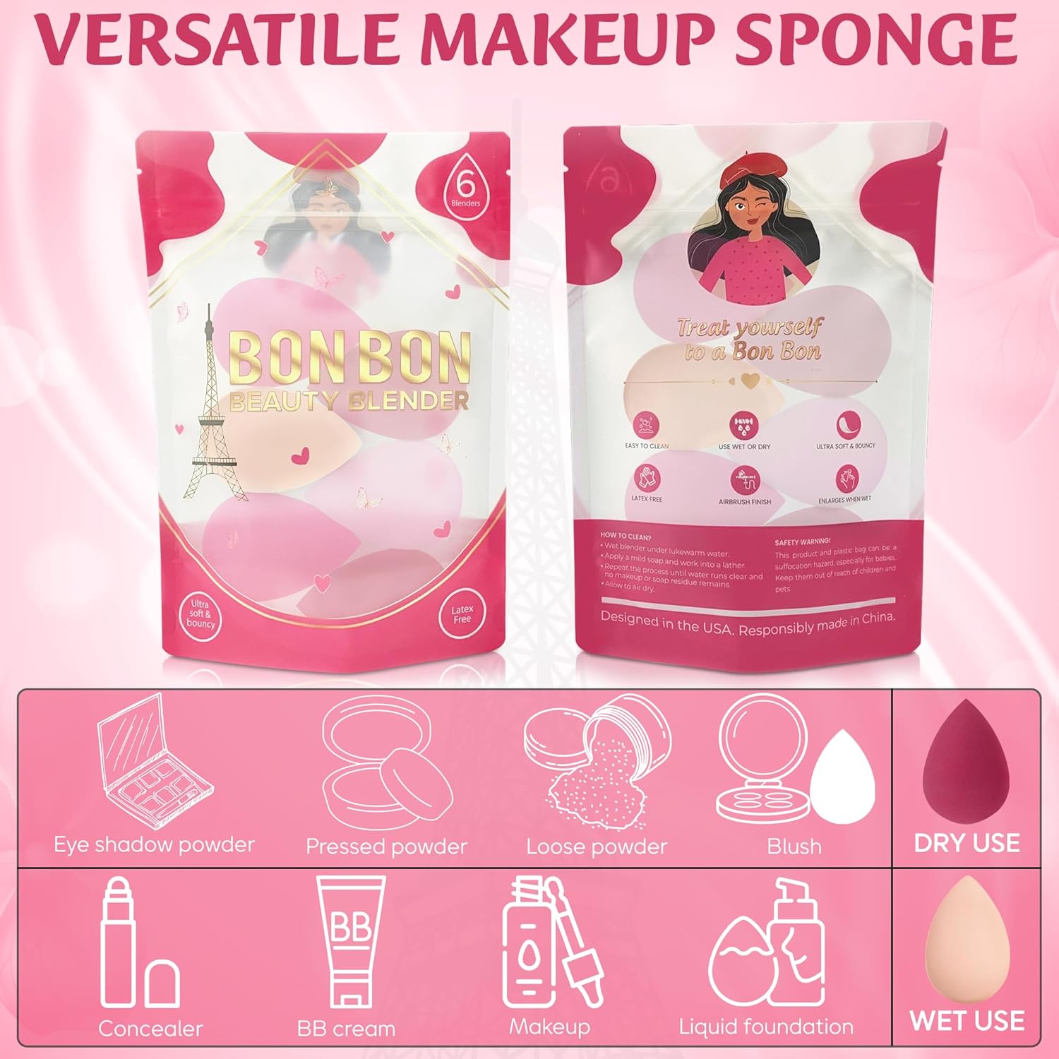 - 🌸 𝗥𝗘𝗨𝗦𝗔𝗕𝗟𝗘 𝗔𝗡𝗗 𝗗𝗨𝗥𝗔𝗕𝗟𝗘 – Our 6 Pack Makeup blender sponge maintains shape and elasticity. For better results, cleanse the big beauty blender after each use and dry it in a well-ventilated area.