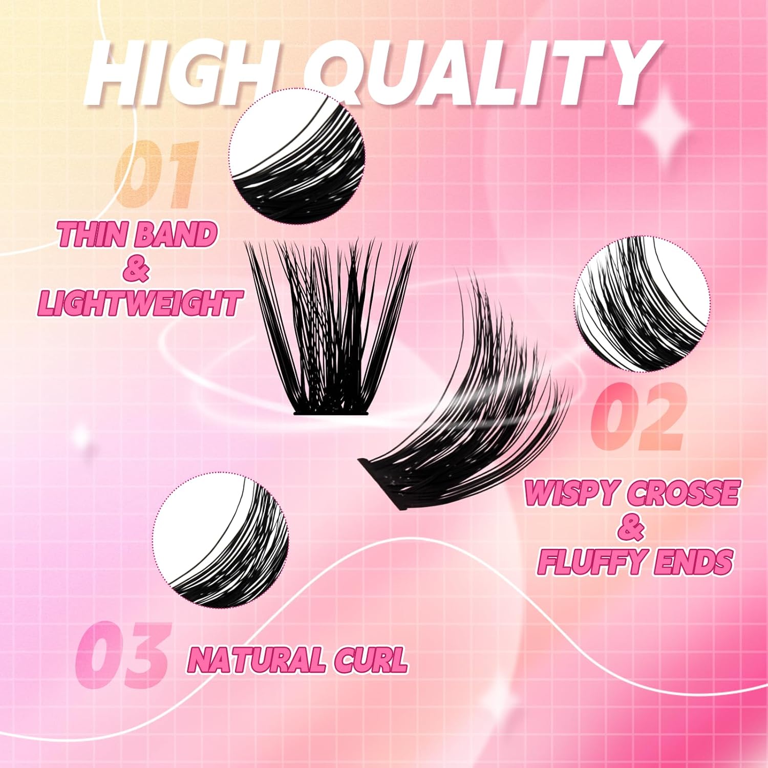 - Easy to use eyelash clustersďźThe lash clusters are easy to wear and will not easily fall apart. With our premium wispy cluster lashes, you can easily get a natural look or dramatic look.