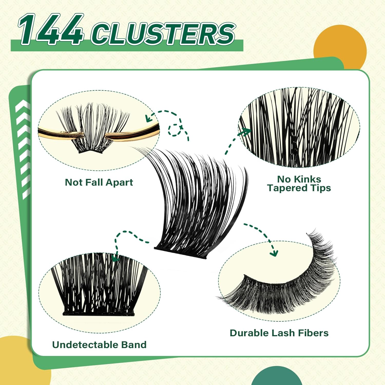 - 【144pcs High Quality Cluster Lashes】The simulated eyelash material is more realistic and will not feel plastic, comfortable and non-irritating on the eyes, allowing you to easily maintain a perfect makeup all day long.