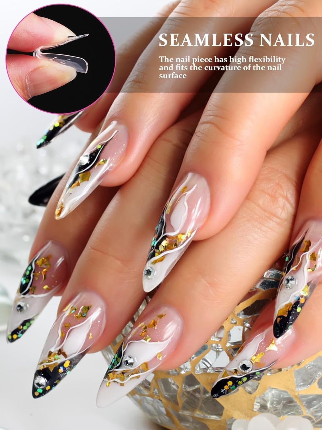 EBANKU Dual Nail Forms for Poly Extension Gel 120 PCS Structure Poly Nail Gel Stiletto Nail Tips for Builder Gel Solid Nail Gel Glue Nail Art Design Salon&DIY