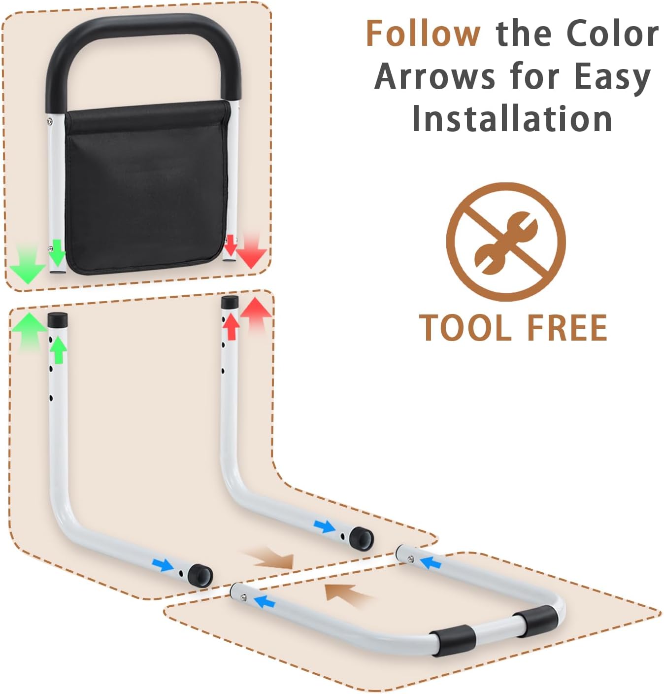 - 【Simple Assembly and Use】Easily assembled in minutes without tools, our compact bed rail can be installed on any size bed frame. Tie-down straps ensure optimum safety during use.