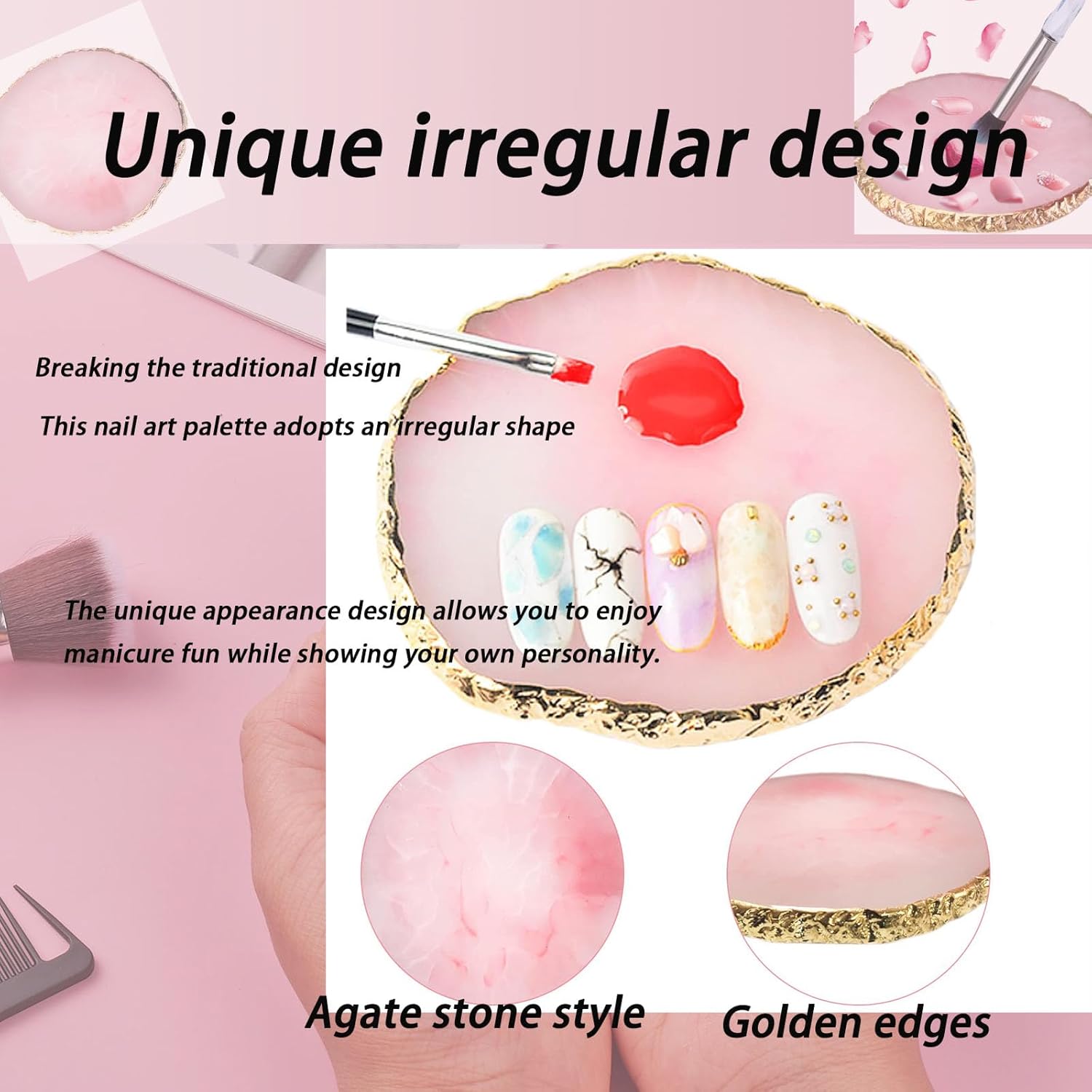 Makeup Palette Tray, Nail Tech Bag, Resin Nail Art Palette Makeup Mixing Palette Gold Edge Nail Art Tools Gel Design Nail Tray DIY, Mixing Palette, Nail Palette (3.86 x 3.43inch Pink)