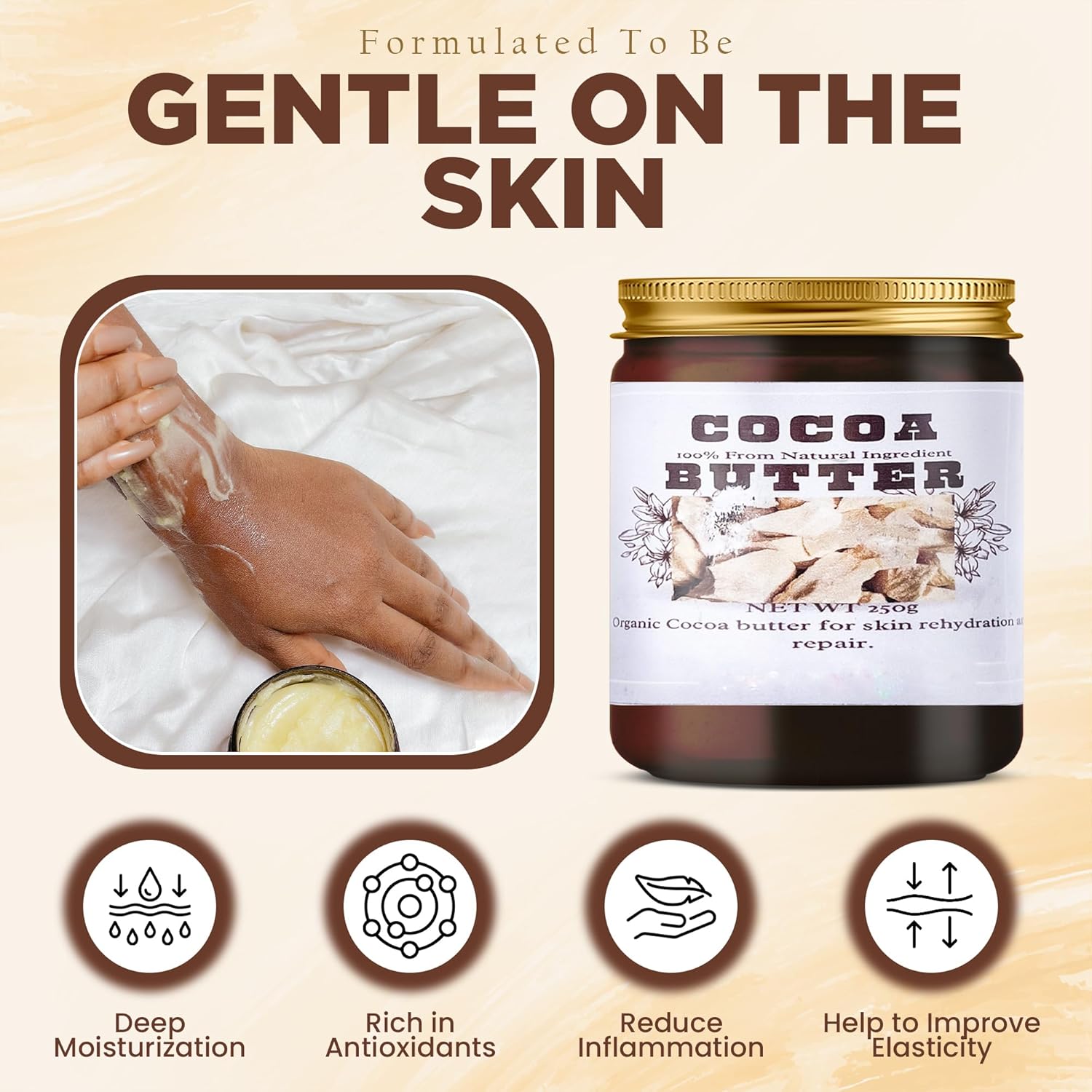 - Pure and Natural: Cocoa butter cream for skin is a rich, natural fat extracted from cocoa beans that deeply hydrates and nourishes skin. Help to improve the appearance of stretch marks, scars, dry, damaged skin, fine lines, wrinkles, and aging skin.