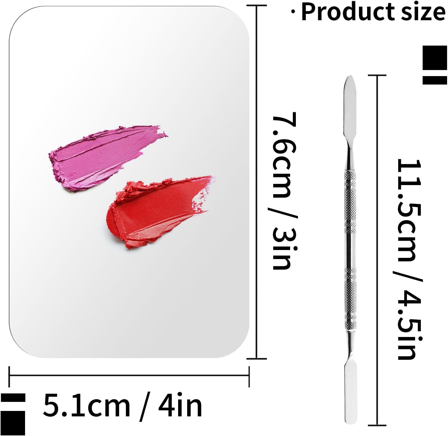 - Makeup Palette Size: The size of nail art palette is 7.6x5.1cm/3*2 inches. Foundation spatula length: 11.5cm/4.5 inches. Ring diameter: 21mm.