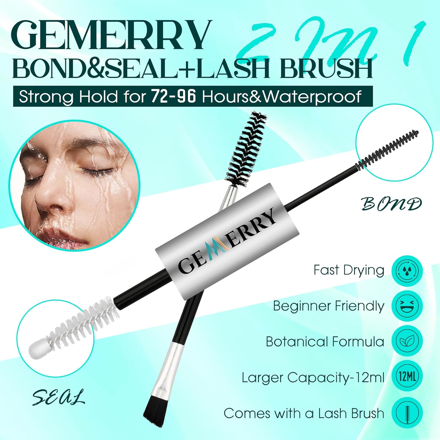 - 【2 IN 1 Bond and Seal】: GEMERRY lash bond and seal has double ended design.The combination of lash bond and lash seal will keep your lashes hold for longer. One side is black bond, spiral brush can evenly apply bond on your lashes, just like mascara, another side is clear seal with white cotton head, which is dust&smudge-proof.