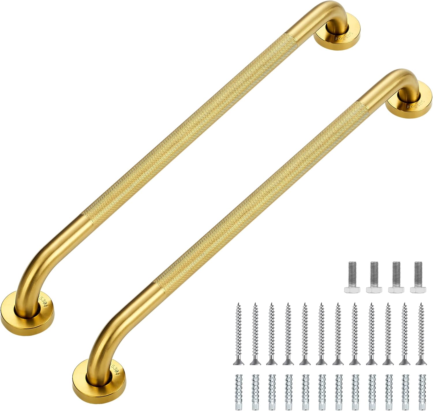 Grab Bars for Shower, 2 Pack 24-Inch Anti Slip Shower Handles for Elderly, Safety Shower Grab Bar, Stainless Steel Handicap Grab Bars for Bathroom,Toilet (Gold, 1" Diameter)