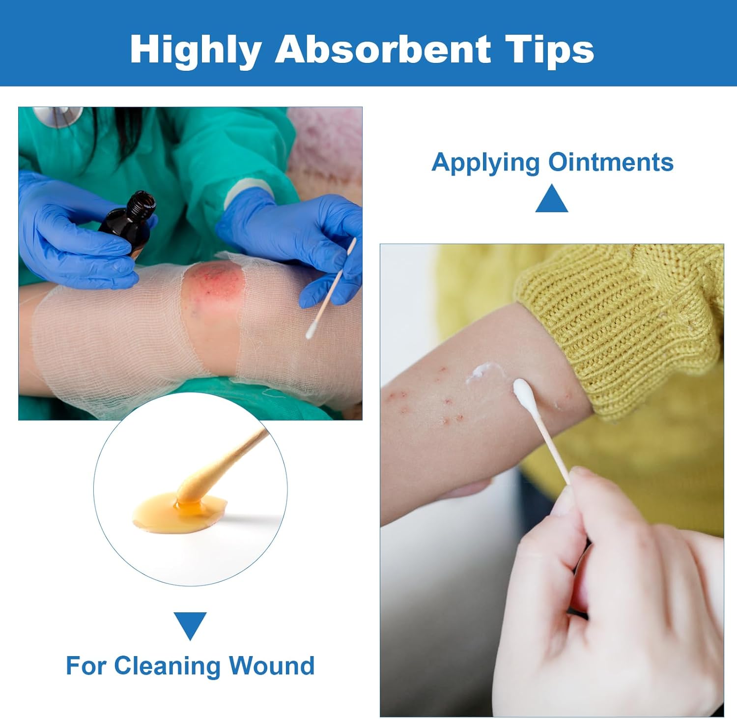 - Medical Grade Cotton Tips: Made of pure natural cotton, the cotton head are solid and firm, won't easily unreavel and fall off