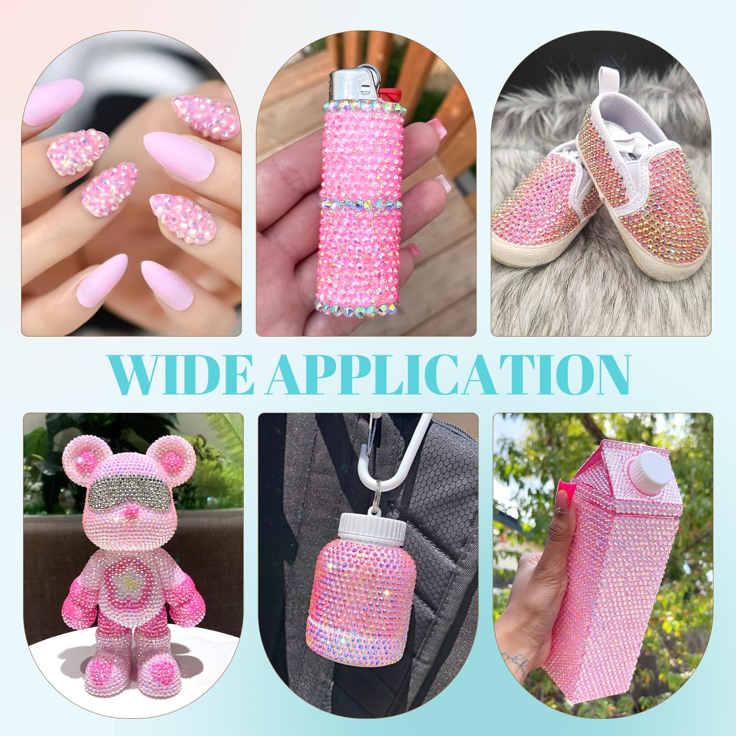 - đWIDE APPLICATION -- These sparkling iridescent resin crystals are perfect for creating dazzling looks. Use them for bedazzling DIY crafts like shoes, tumblers, mugs, bottles, phone cases, popsockets, scrapbooks, photo frames, diamond paintings, greeting cards, bags, glasses, guitars, keychains, hats, masks, hair clips, bracelets, wristbands, clothing, wedding dresses, and more. Apply it to what you want to bling!
