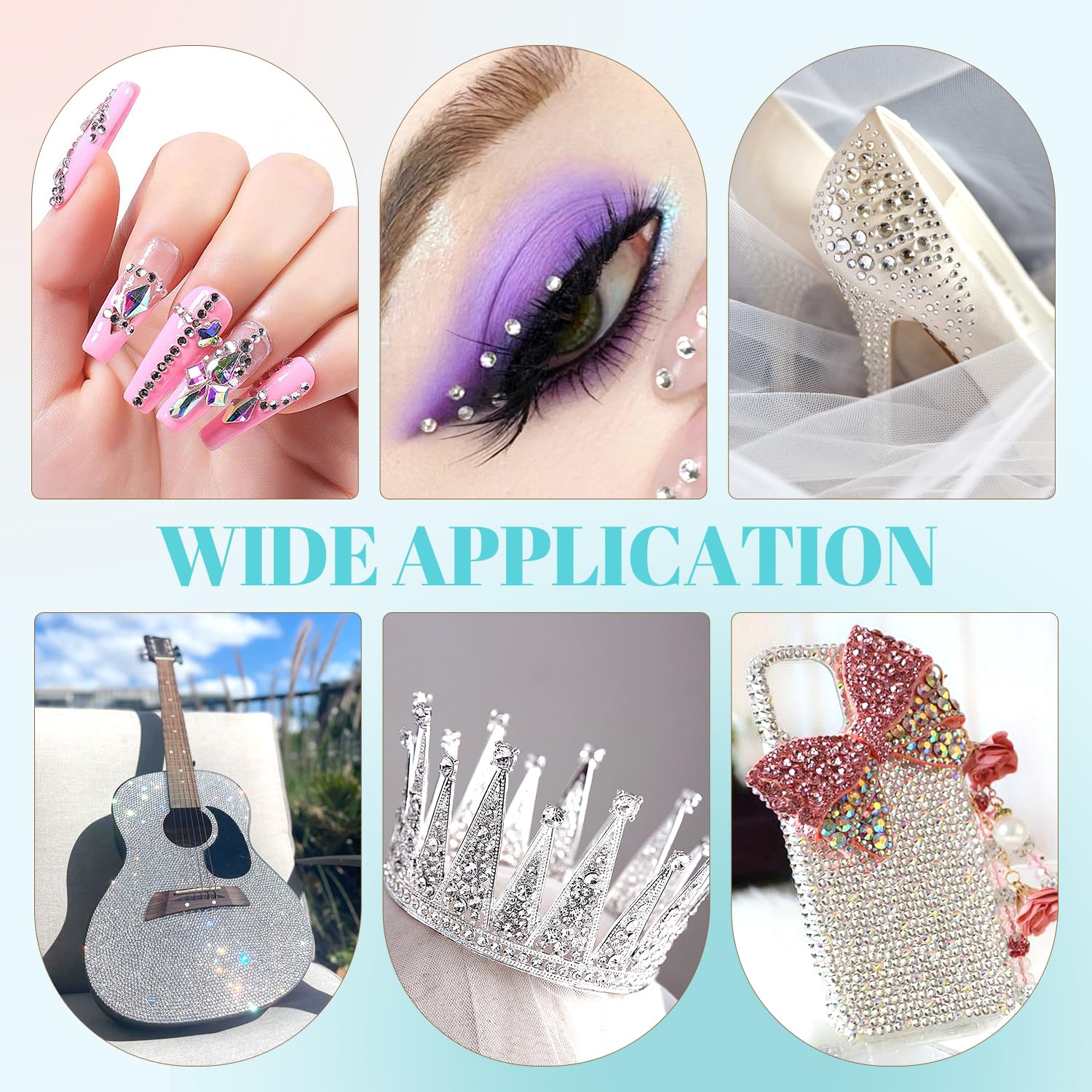 - đWIDE APPLICATION -- These sparkling iridescent resin crystals are perfect for creating dazzling looks. Use them for bedazzling DIY crafts like shoes, tumblers, mugs, bottles, phone cases, popsockets, scrapbooks, photo frames, diamond paintings, greeting cards, bags, glasses, guitars, keychains, hats, masks, hair clips, bracelets, wristbands, clothing, wedding dresses, and more. Apply it to what you want to bling!