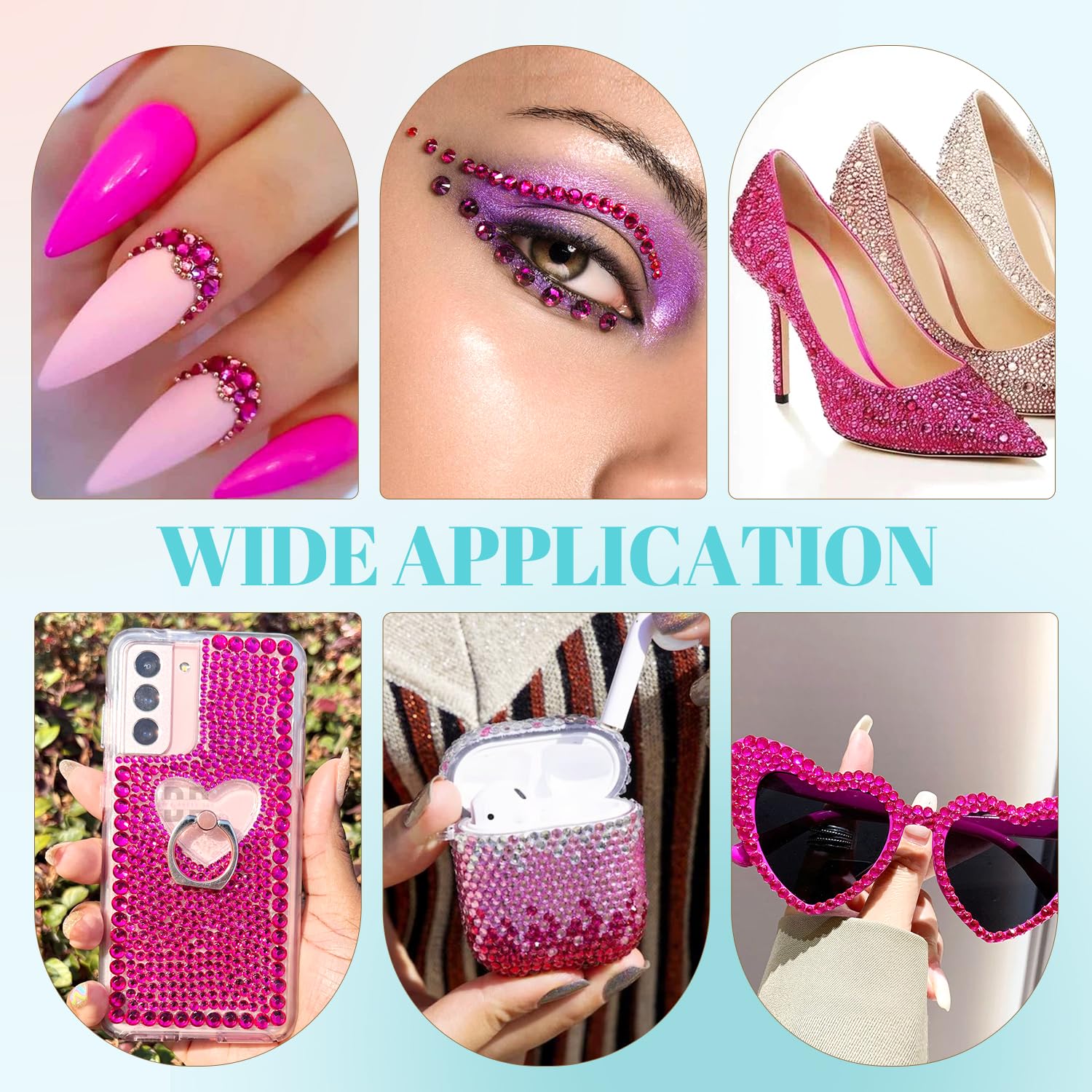 - đWIDE APPLICATION -- These sparkling iridescent resin crystals are perfect for creating dazzling looks. Use them for bedazzling DIY crafts like shoes, tumblers, mugs, bottles, phone cases, popsockets, scrapbooks, photo frames, diamond paintings, greeting cards, bags, glasses, guitars, keychains, hats, masks, hair clips, bracelets, wristbands, clothing, wedding dresses, and more. Apply it to what you want to bling!