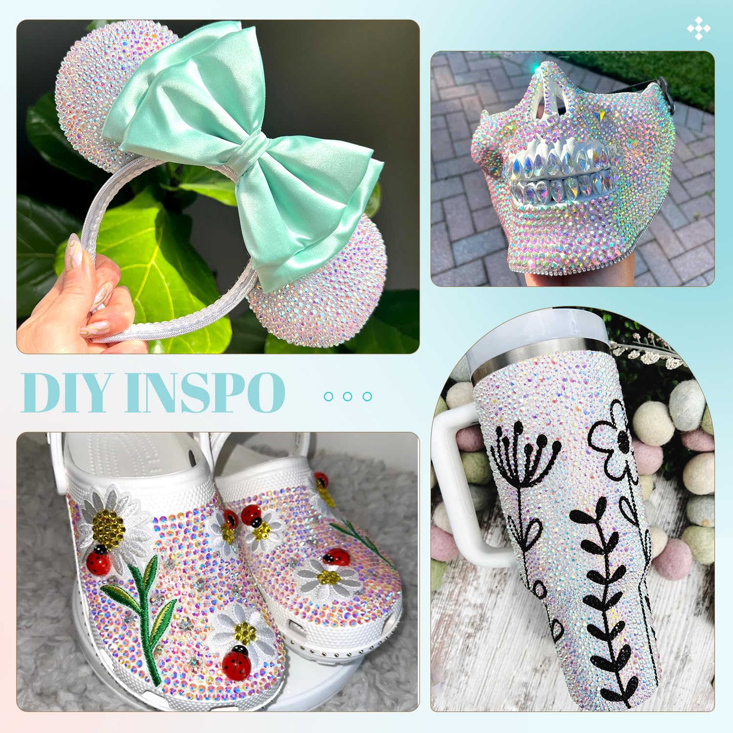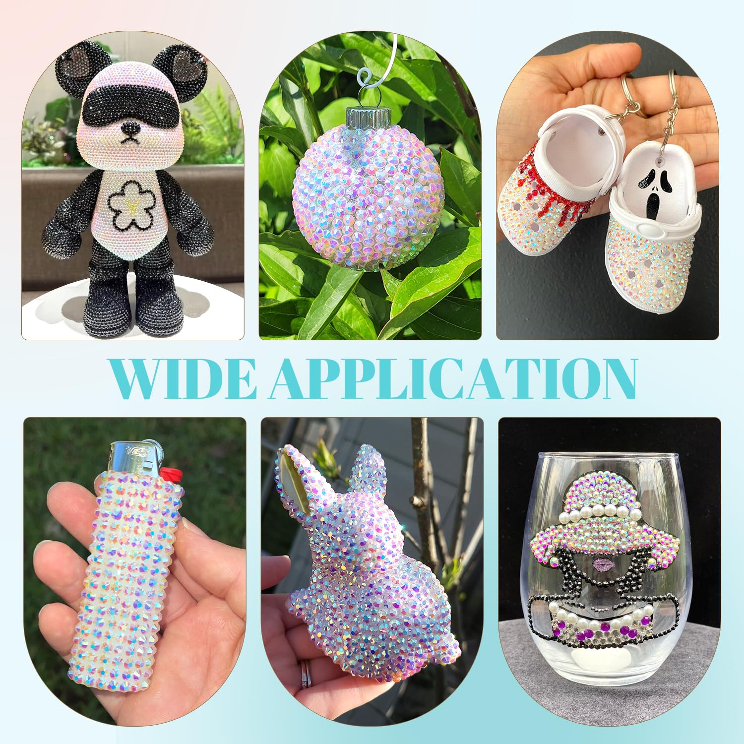 - đWIDE APPLICATION -- These sparkling iridescent resin crystals are perfect for creating dazzling looks. Use them for bedazzling DIY crafts like shoes, tumblers, mugs, bottles, phone cases, popsockets, scrapbooks, photo frames, diamond paintings, greeting cards, bags, glasses, guitars, keychains, hats, masks, hair clips, bracelets, wristbands, clothing, wedding dresses, and more. Apply it to what you want to bling!