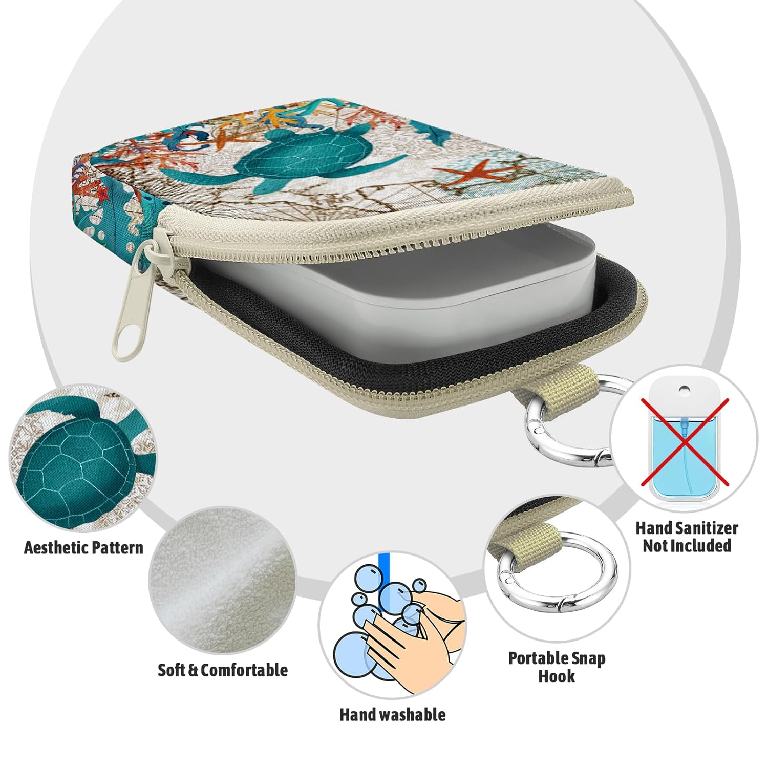 Cute Sea Turtle Hand Sanitizer Spray Case, Hand Sanitizer Holder Zippered Pouch, Fashion Accessory with Snap Hook for Glow Mist and Power Mist 1FL OZ