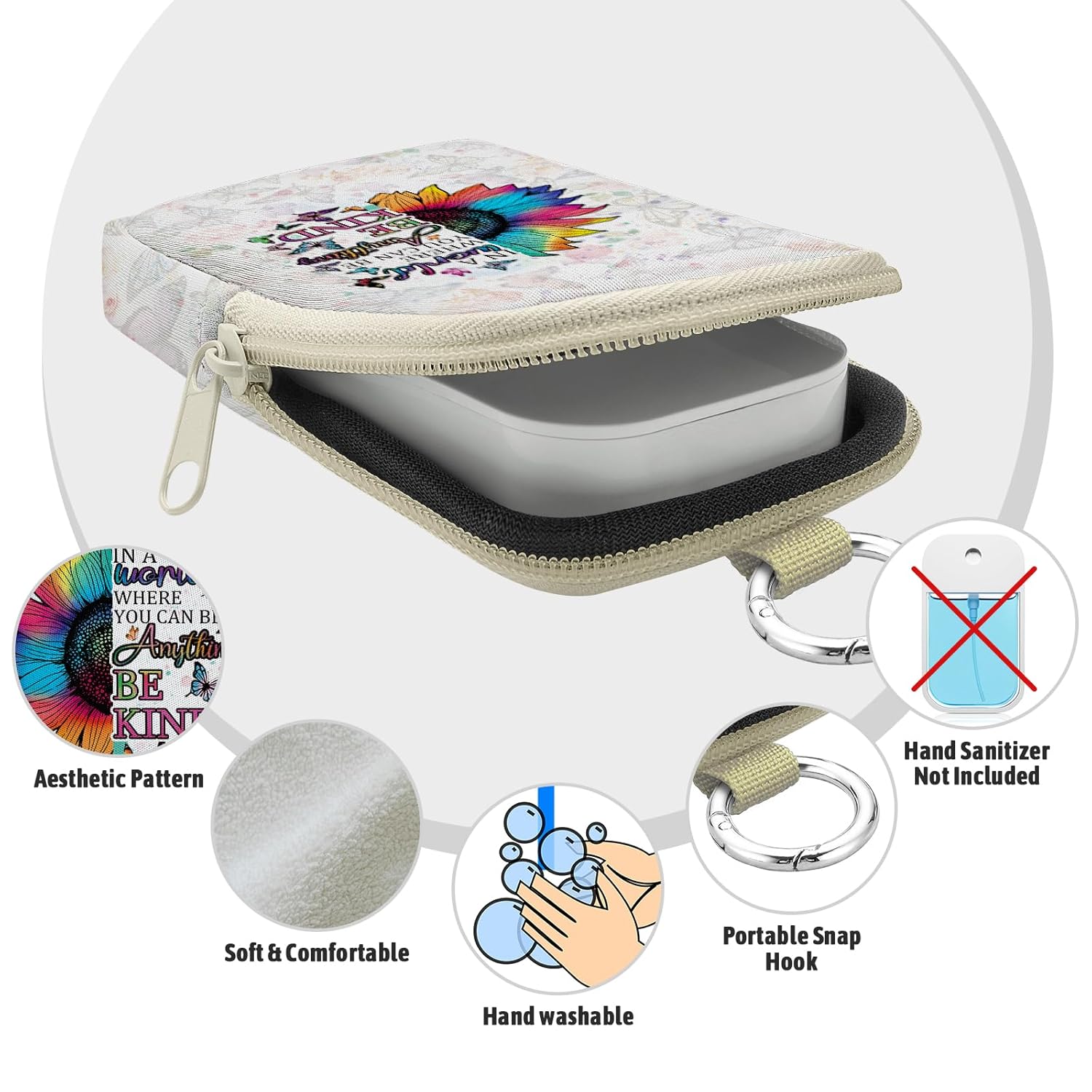 Sunflower Be Kind Hand Sanitizer Spray Case, Hand Sanitizer Holder Zippered Pouch, Cute Fashion Accessory with Snap Hook for Glow Mist and Power Mist 1FL OZ