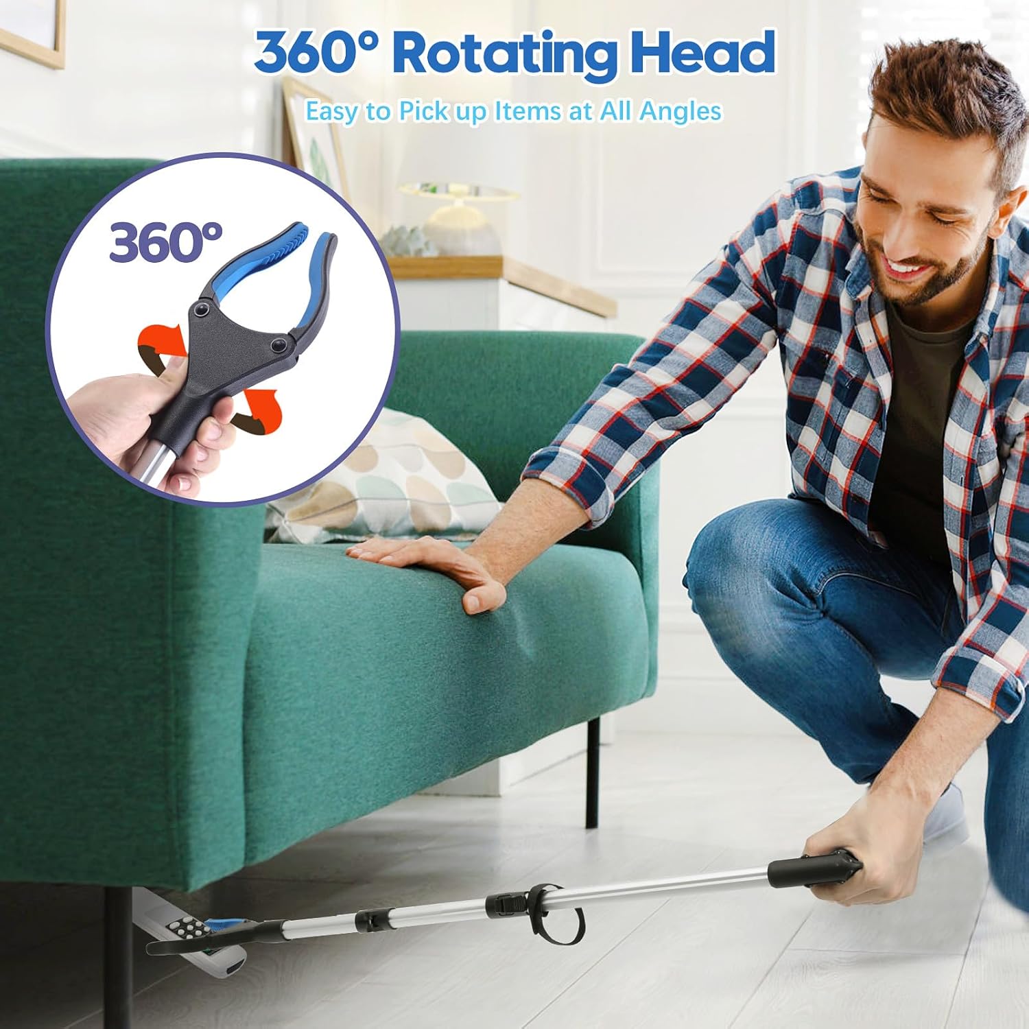 - Easy to Get What You Want:4-inch non-slip jaws - allow you to effortlessly grab smooth items like cans. Jaw magnets - allow you to easily grab metal items like keys.360 degree rotation - allows you to effortlessly grab items in any direction without twisting your arm or wrist.